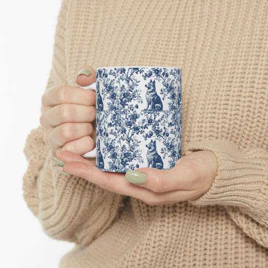 German Shepherd French Blue Toile de Jouy Mug
