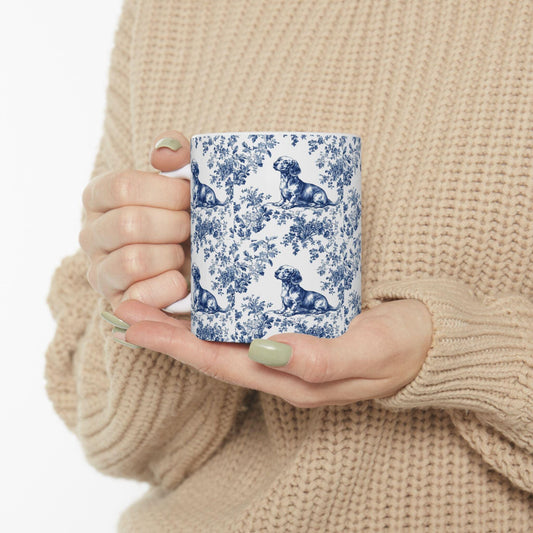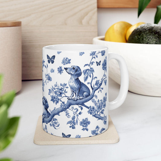 Dachshund French Blue Toile de Jouy Mug
