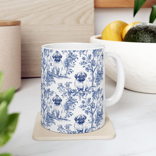 Pug French Blue Toile de Jouy Mug