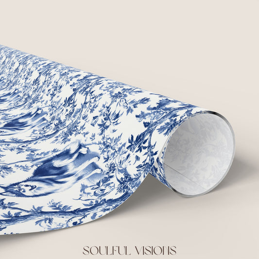 Husky French Toile De Jouy Wrapping Paper
