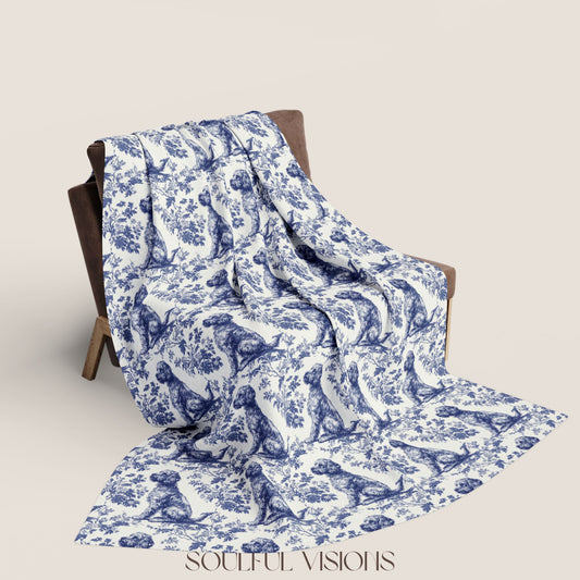 Poodle 2 French Toile De Jouy Blanket