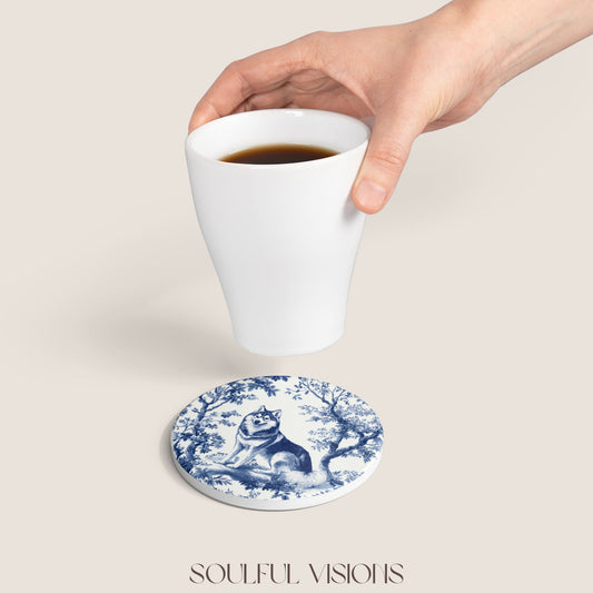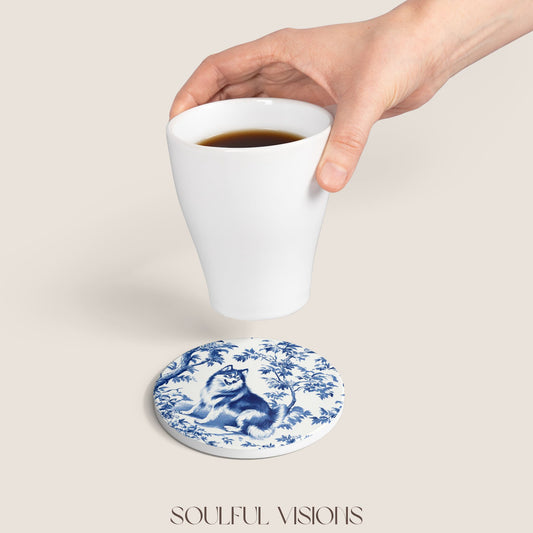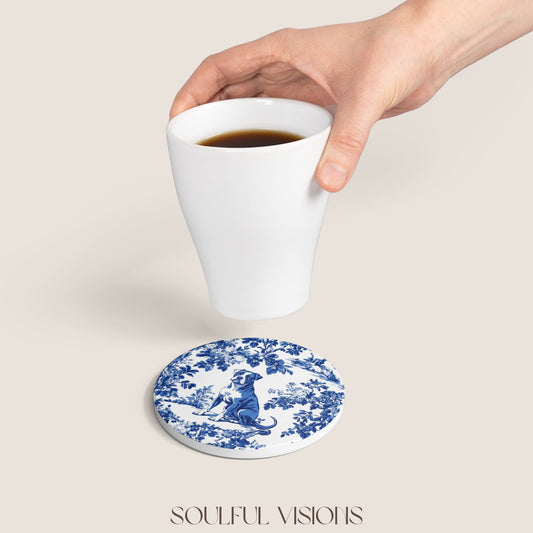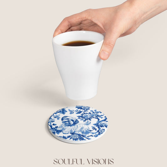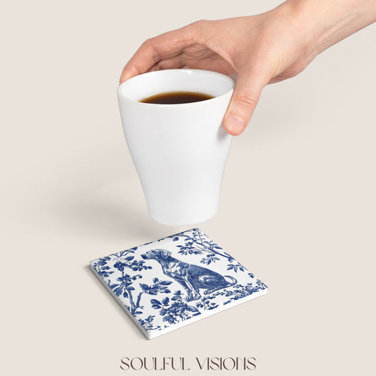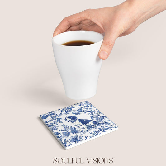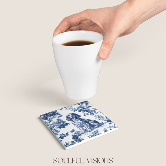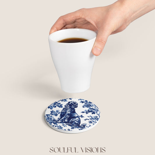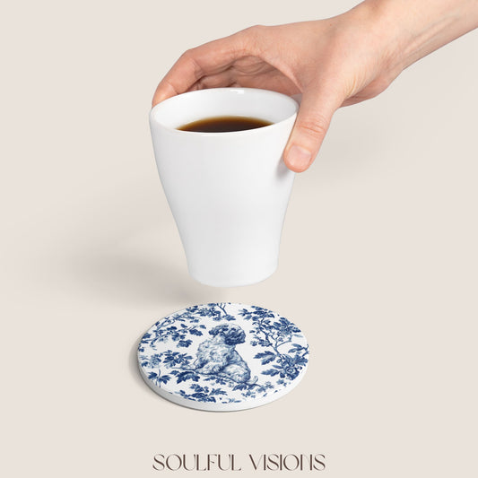 Cocker Spaniel Ceramic Coaster French Blue Toile