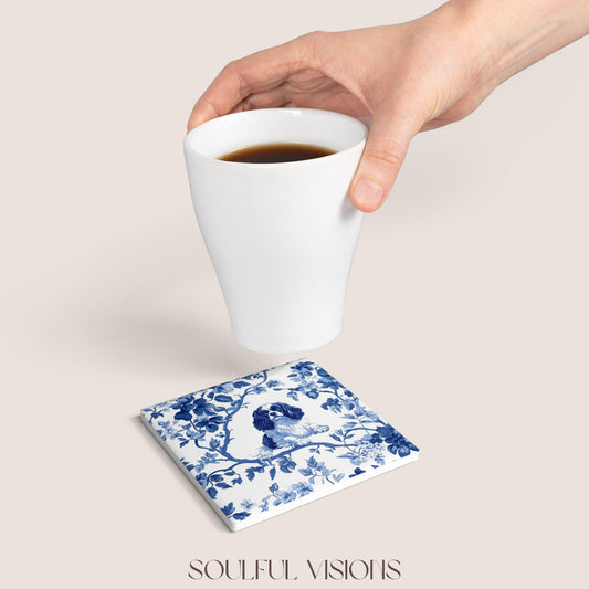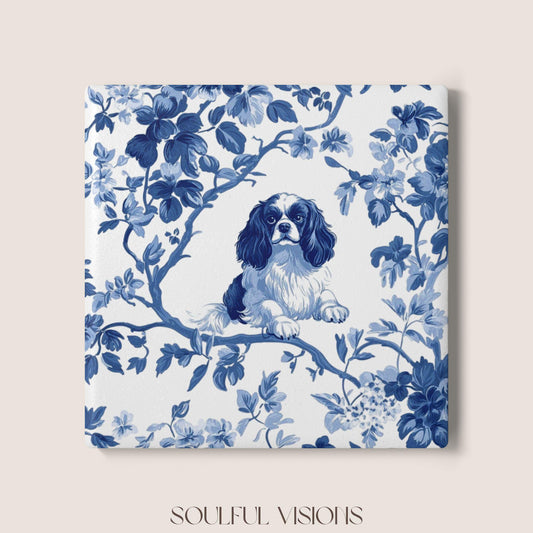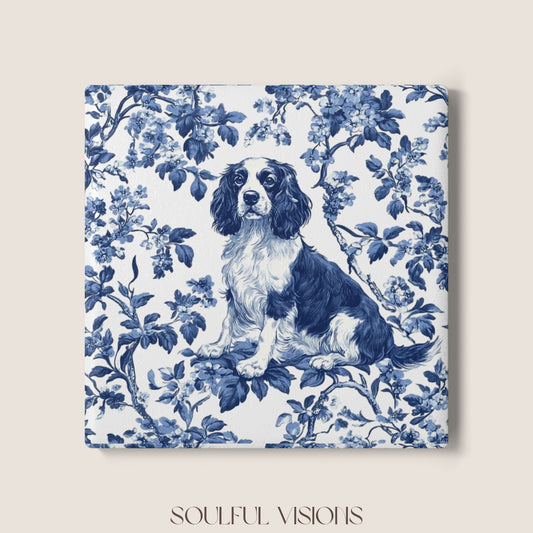 Cavalier Spaniel Ceramic Coaster French Blue Toile