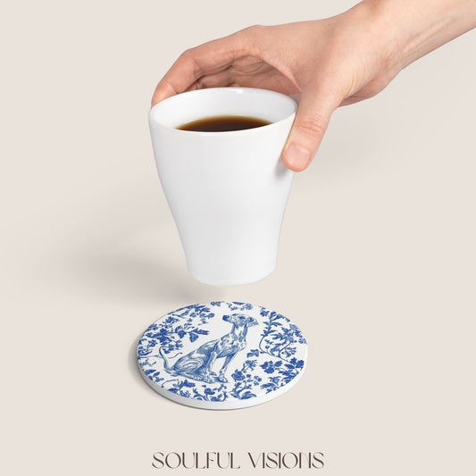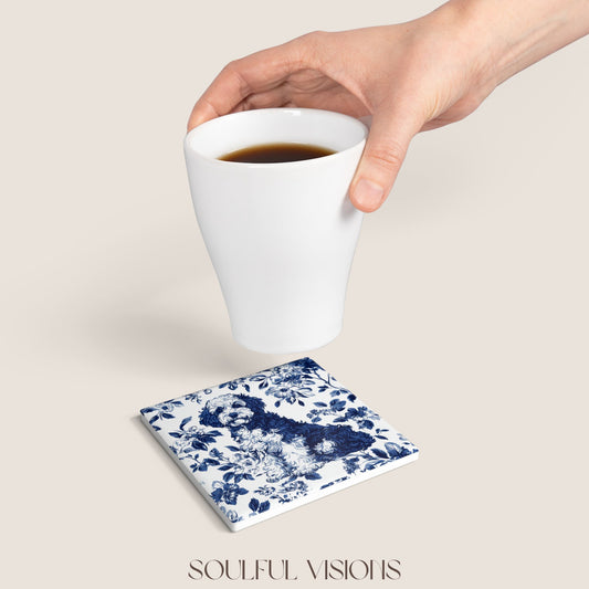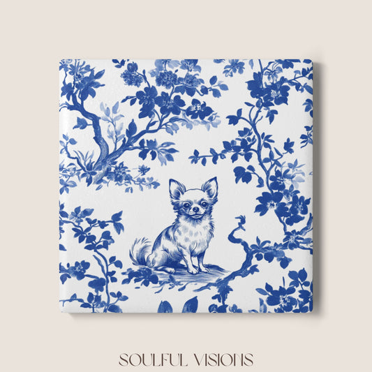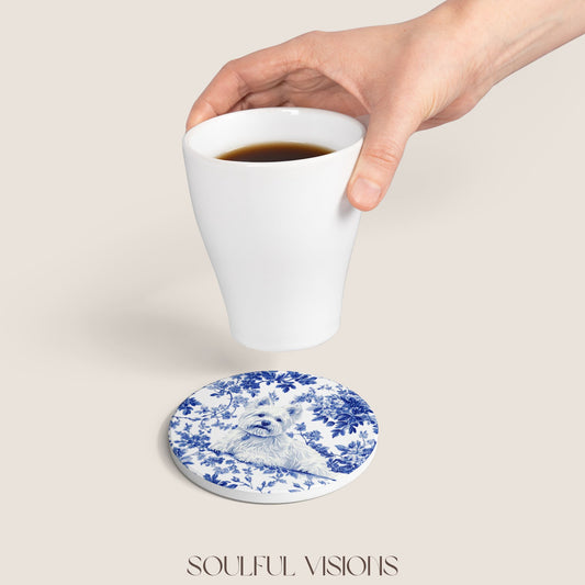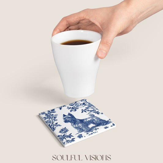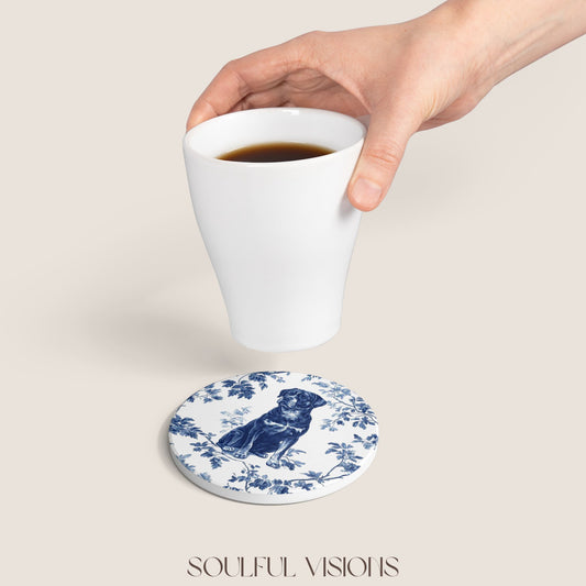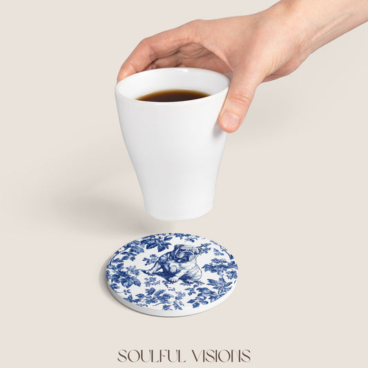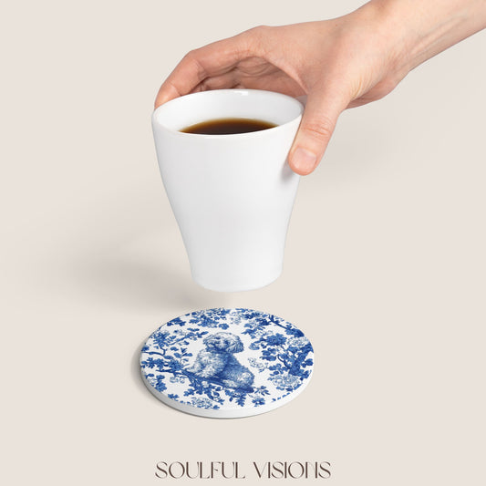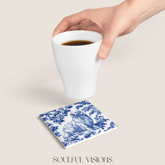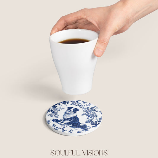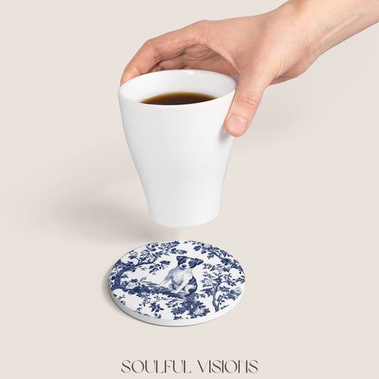 Australian Shepherd Ceramic Coaster French Blue Toile