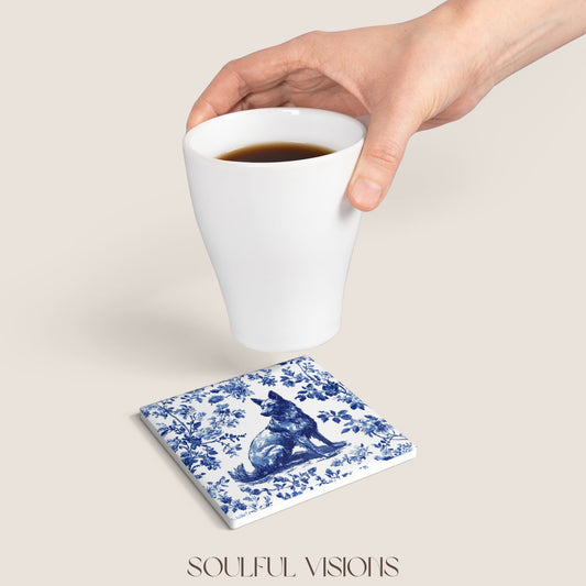 Belgian Malinois Ceramic Coaster French Blue Toile