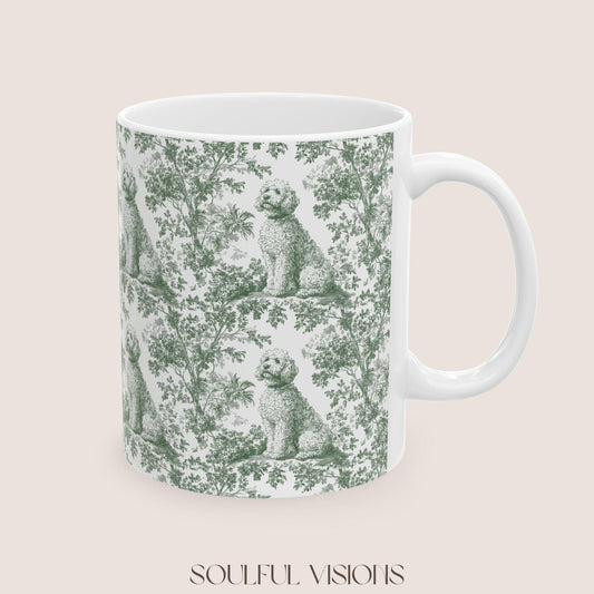 GoldenDoodle French Pastel Green Toile de Jouy Mug