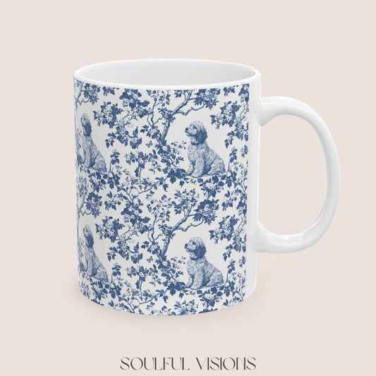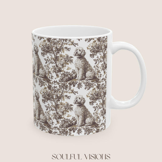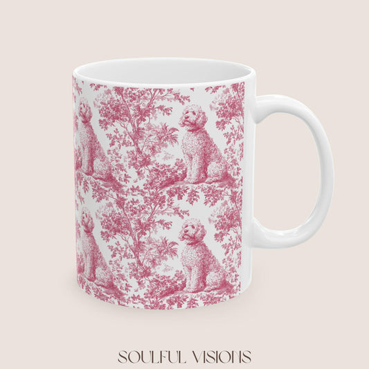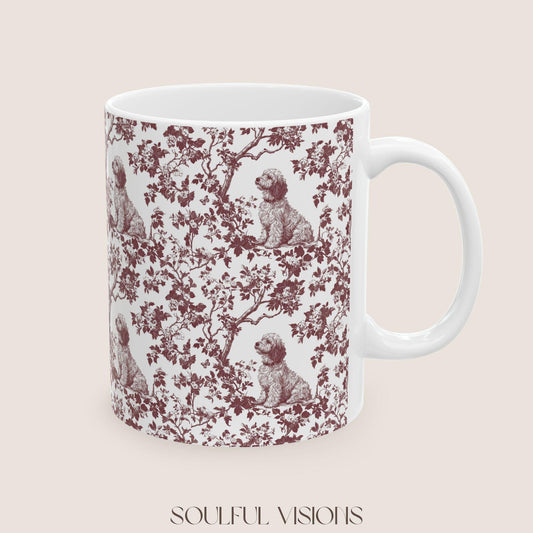 GoldenDoodle Burgundy French Toile de Jouy Mug