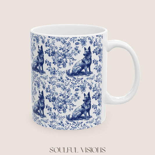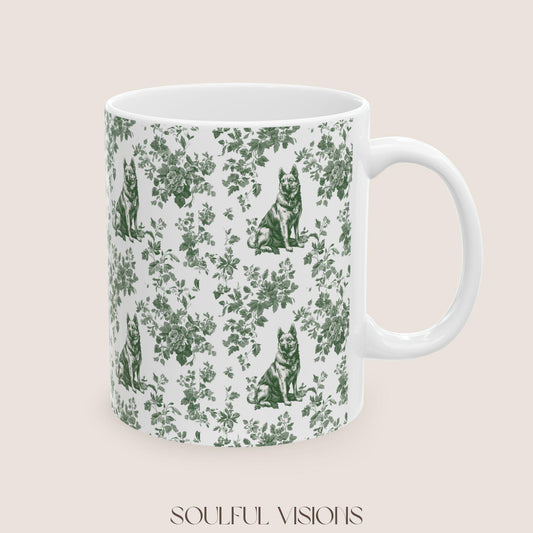 German Shepherd French Pastel Green Toile de Jouy Mug