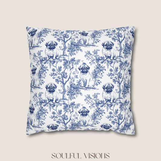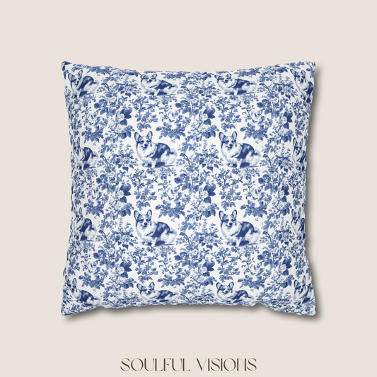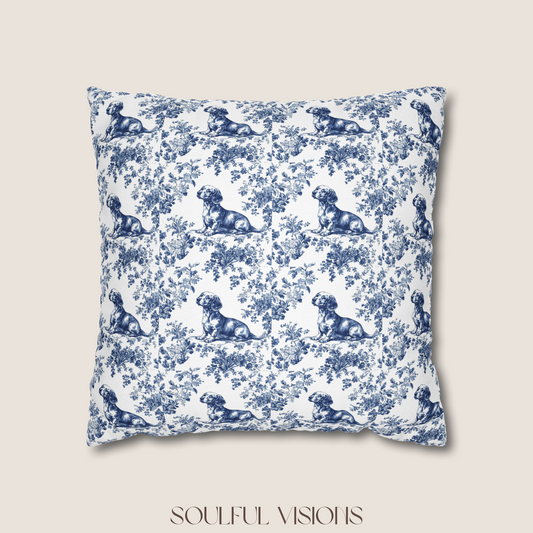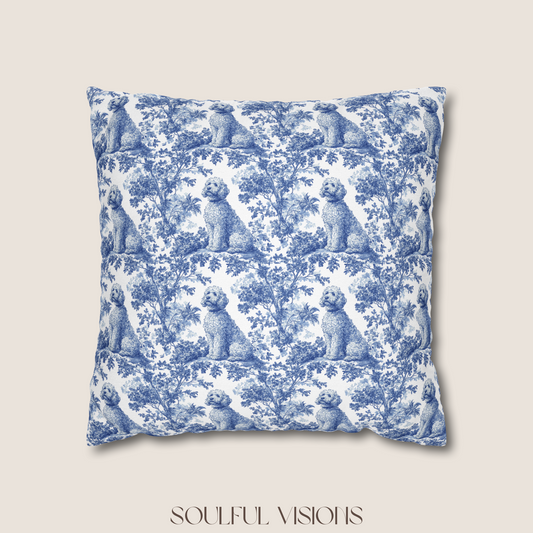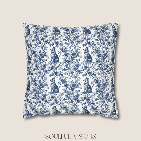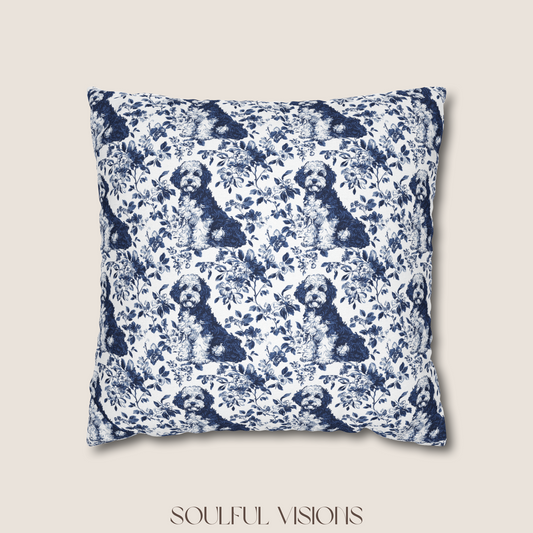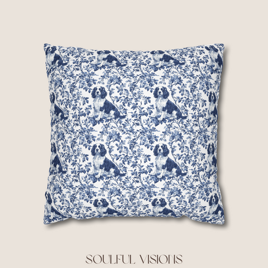 Cavalier King Charles Spaniel Blue French Toile De Jouy Pillow
