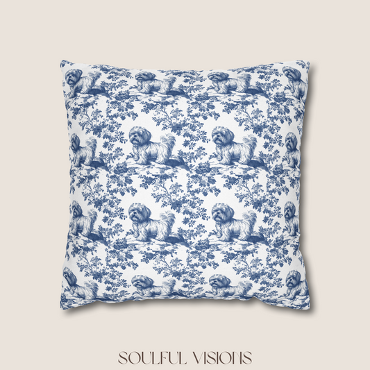 Yorkshire Terrier French Blue Toile De Jouy Pillow