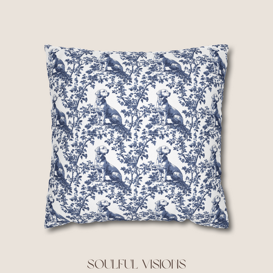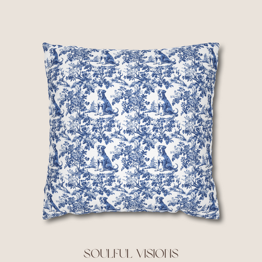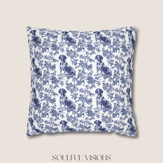 English Springer Spaniel French Blue Toile De Jouy Pillow