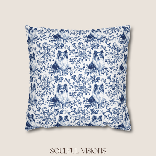 Shetland Sheepdog Blue French Toile De Jouy Pillow