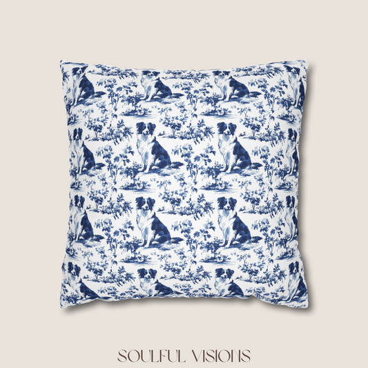 Border Collie Blue French Toile Pillow