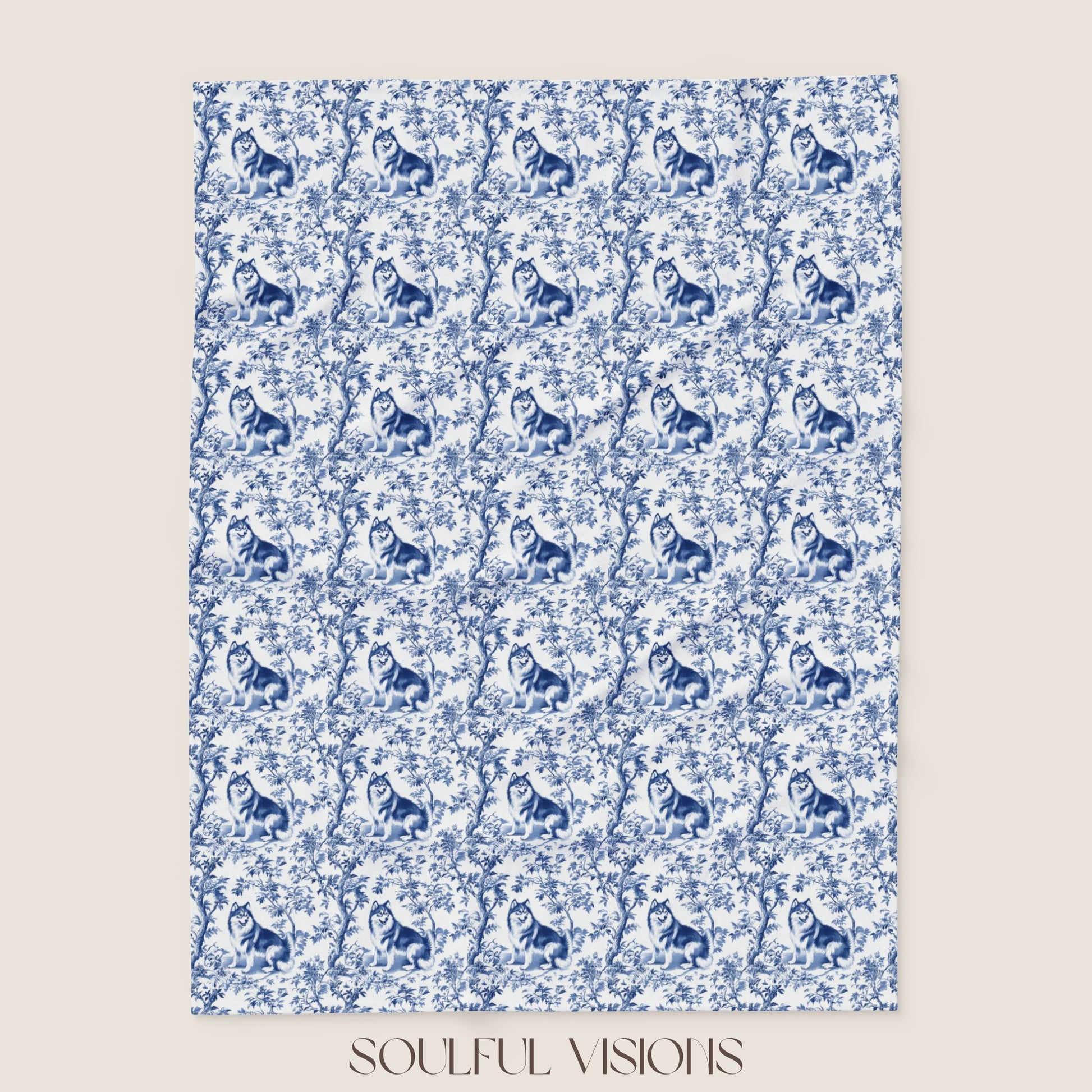 Dog Breeds Toile de Jouy Blue & White Blanket 🐾💙