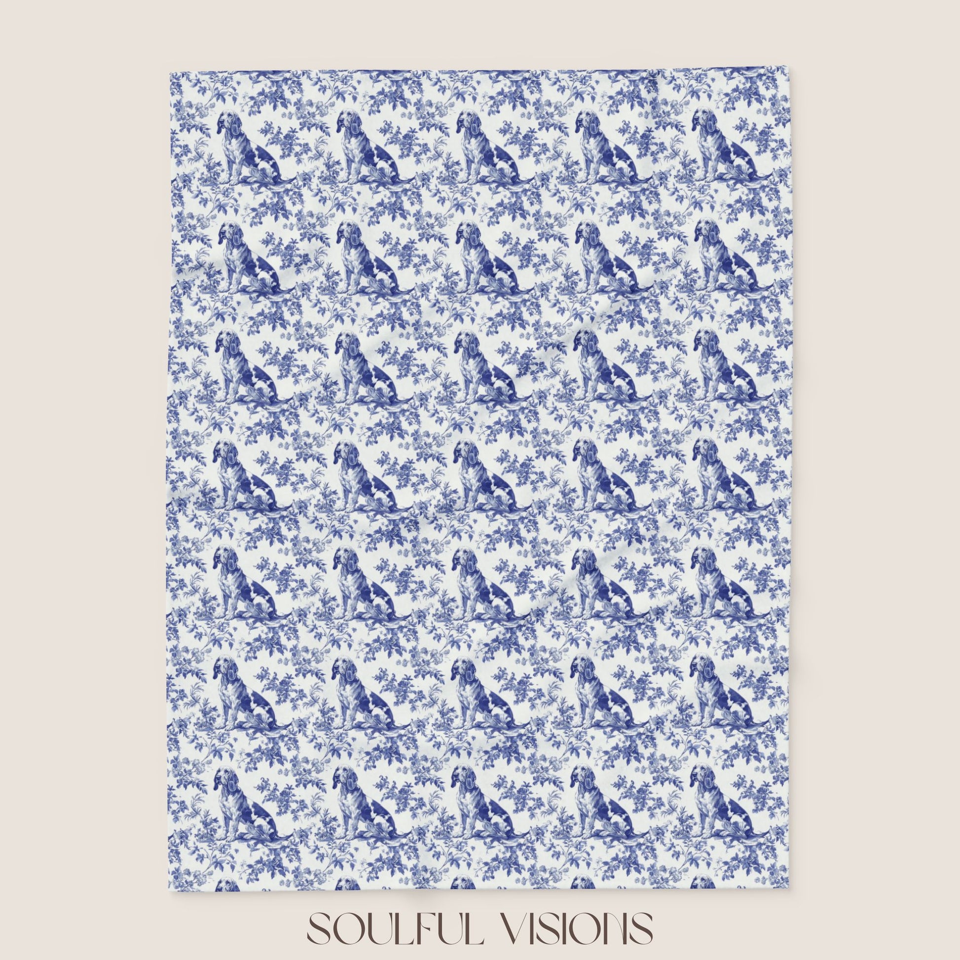 Dog Breeds Toile de Jouy Blue & White Blanket 🐾💙