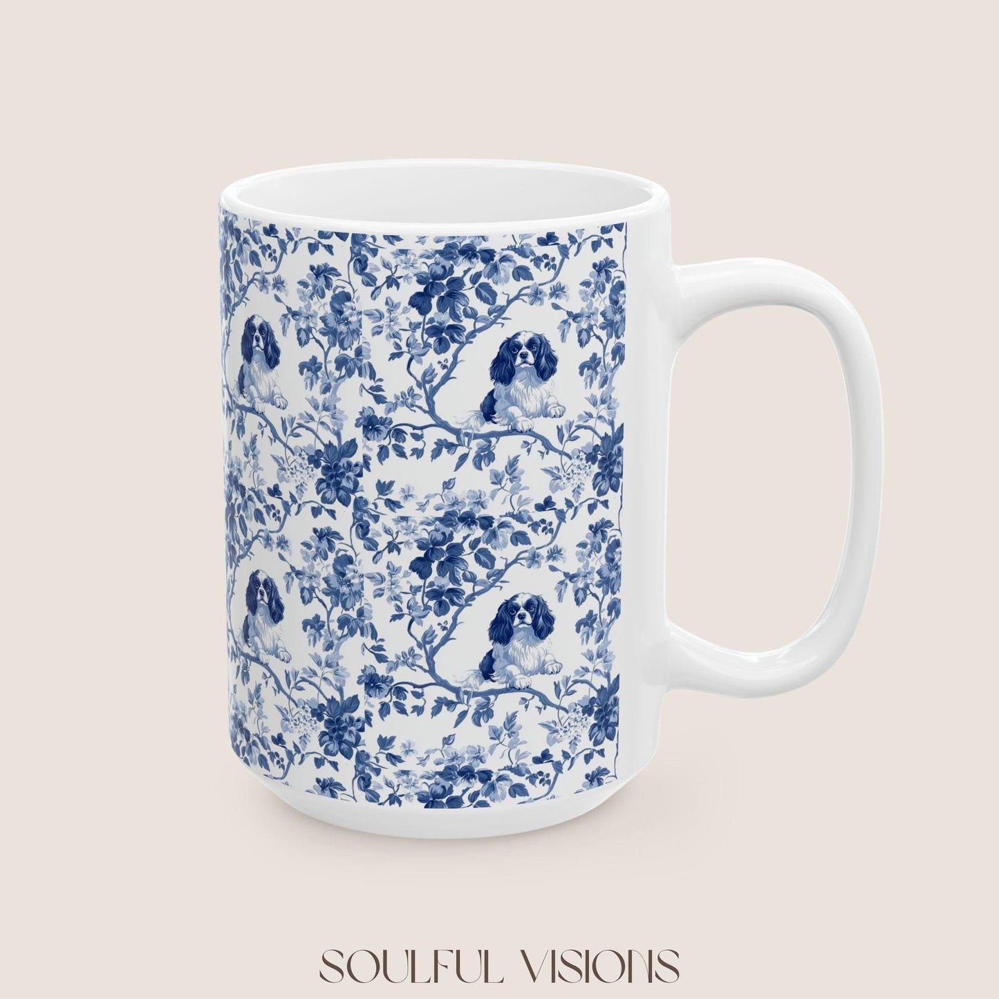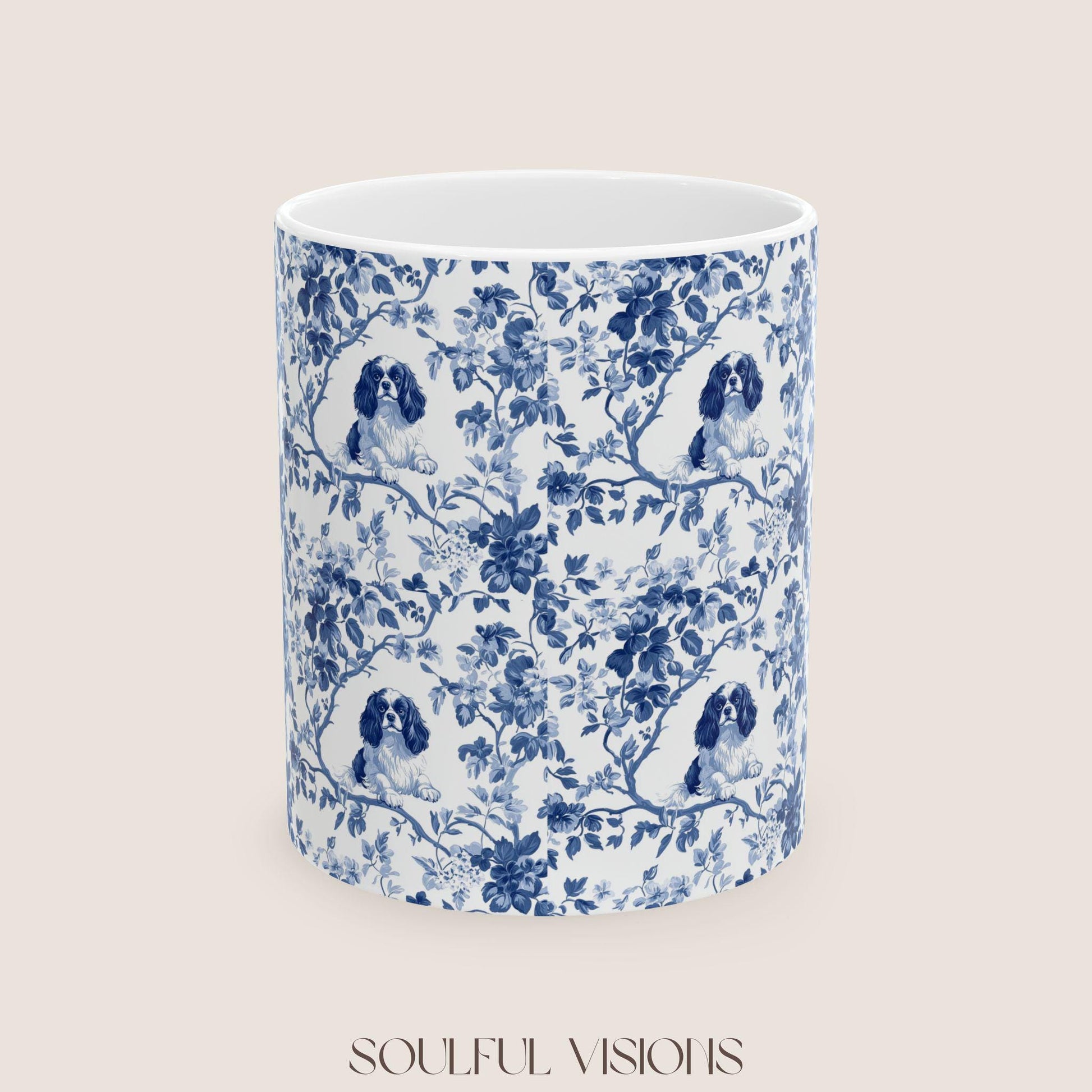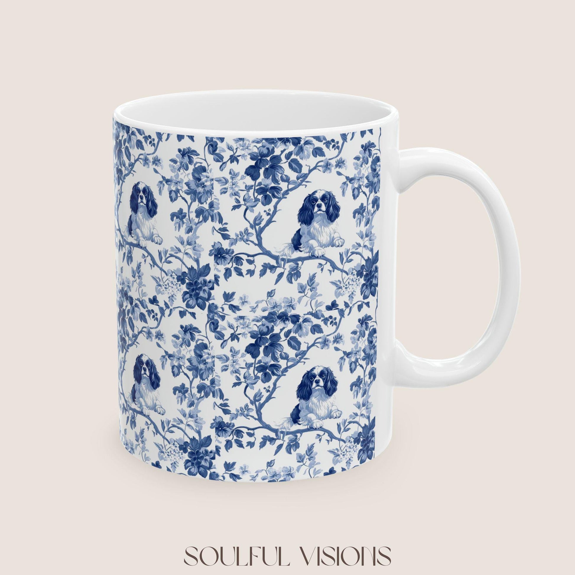 Cavalier King Charles Spaniel French Blue Toile de Jouy Mug