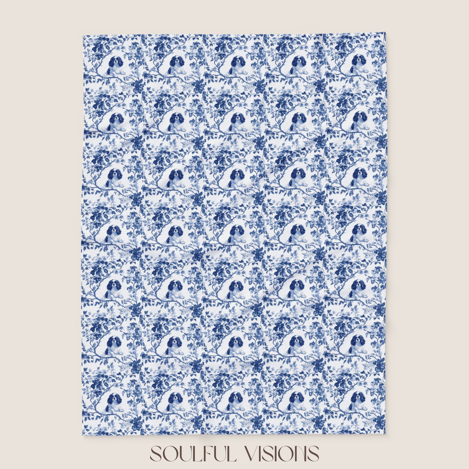Cavalier King Charles Spaniel French Toile De Jouy Blanket