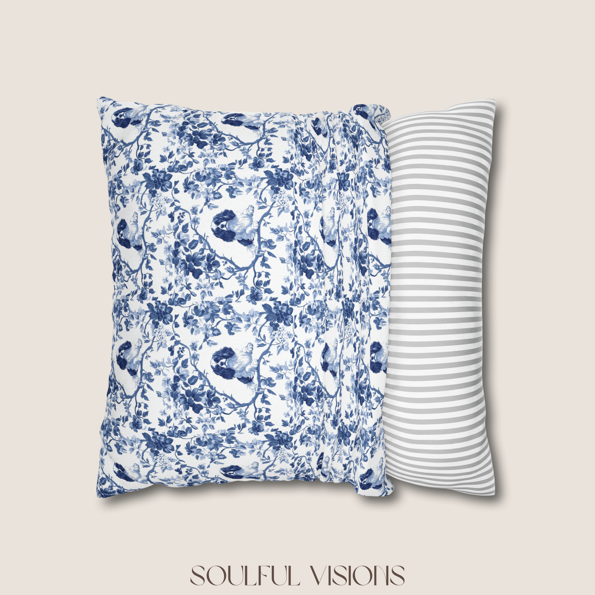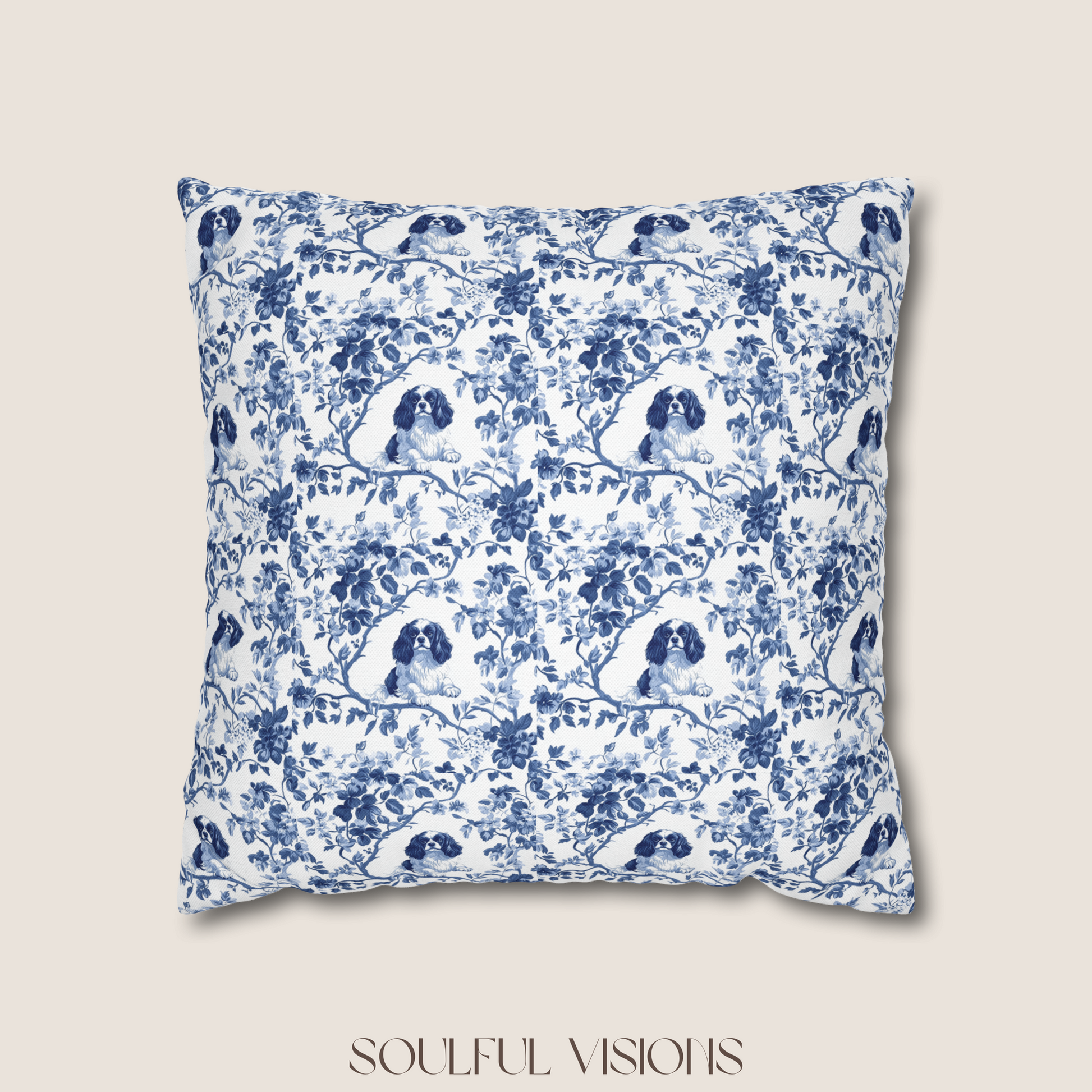 Cavalier King Charles Spaniel Blue French Toile De Jouy Pillow
