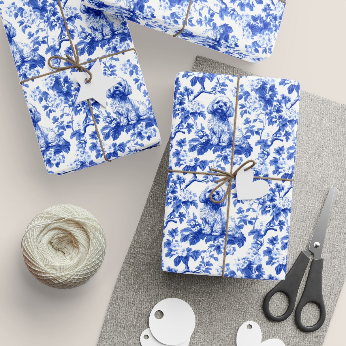 Elevate your gift-giving with our elegant French Toile de Jouy wrapping paper. Featuring a timeless vintage pattern, this wrapping paper brings a touch of sophistication and charm to every package — perfect for dog lovers, holidays, or special occasions.