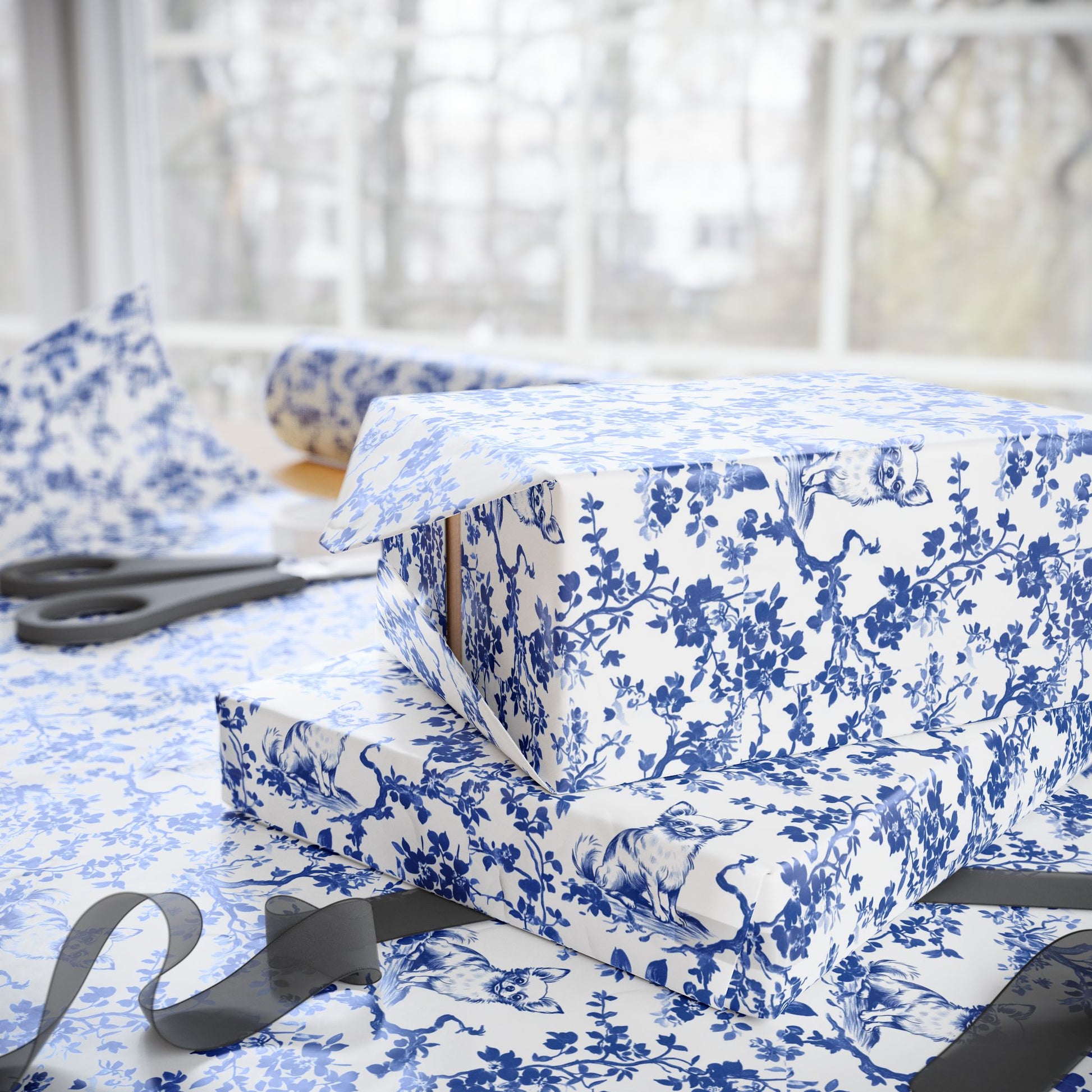 Elevate your gift-giving with our elegant French Toile de Jouy wrapping paper. Featuring a timeless vintage pattern, this wrapping paper brings a touch of sophistication and charm to every package — perfect for dog lovers, holidays, or special occasions.
