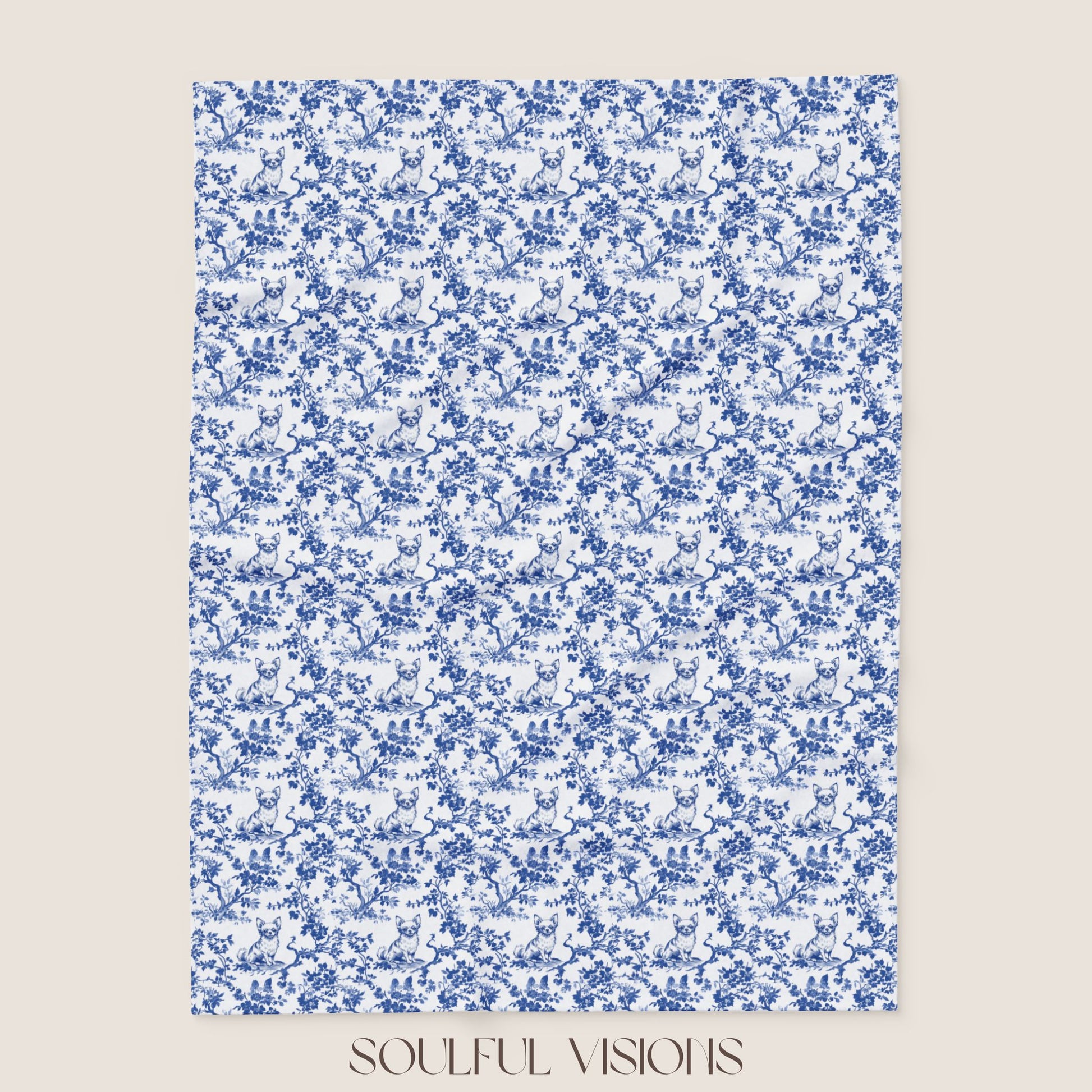 Dog Breeds Toile de Jouy Blue & White Blanket 🐾💙