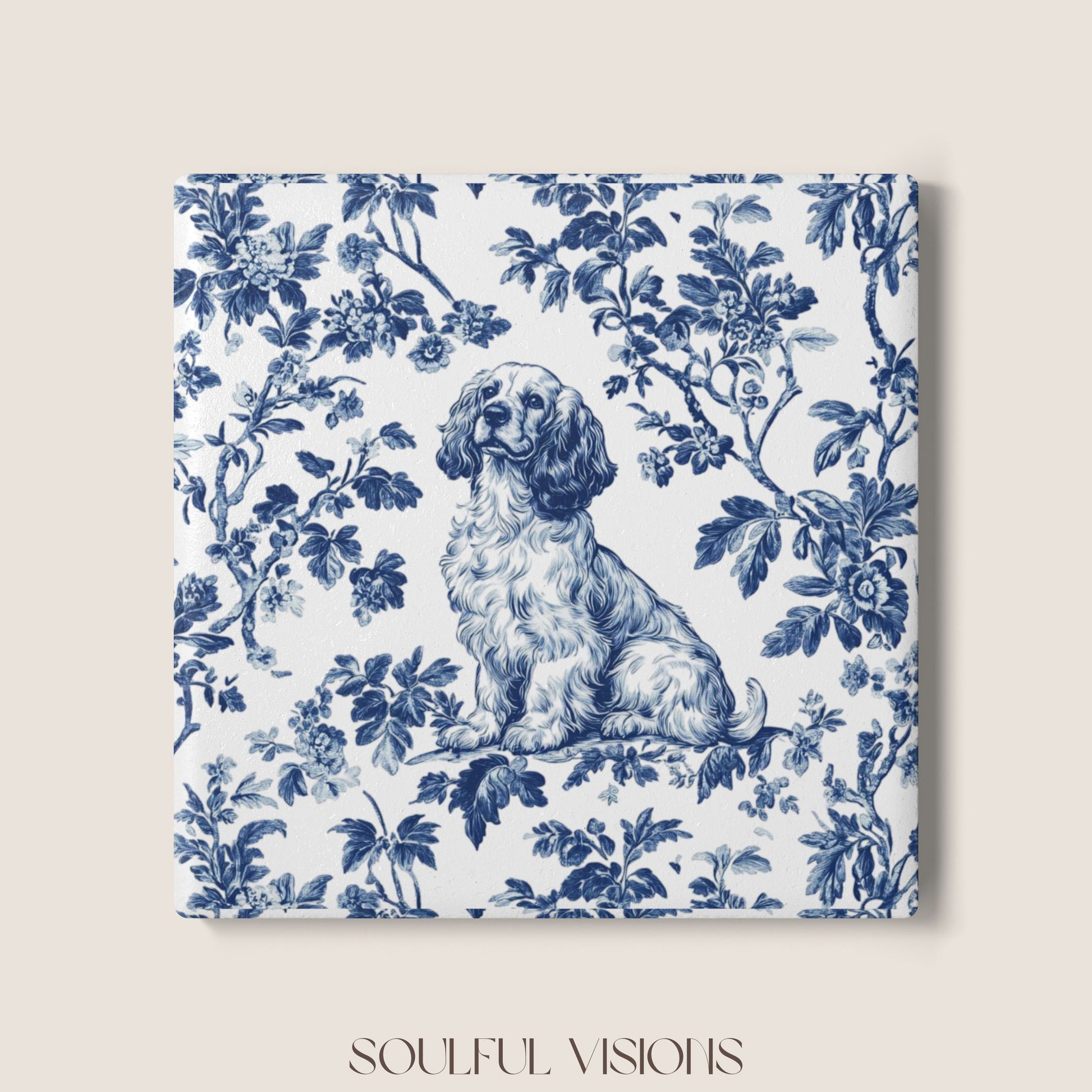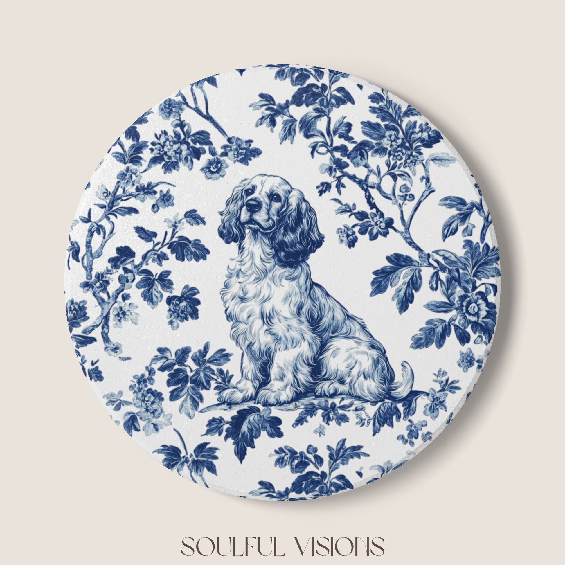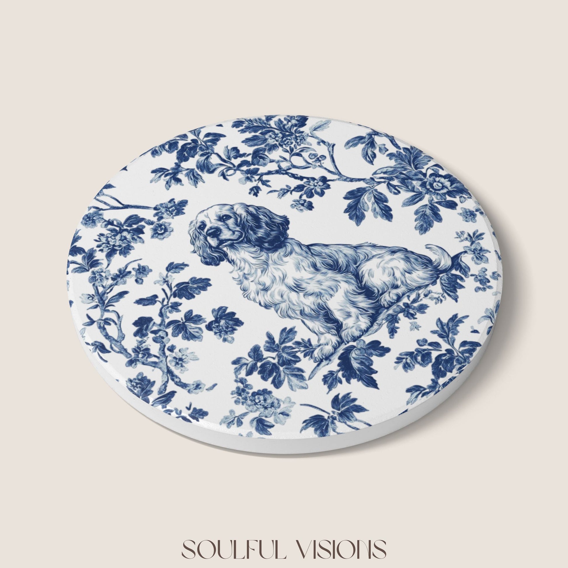 Cocker Spaniel Ceramic Coaster French Blue Toile
