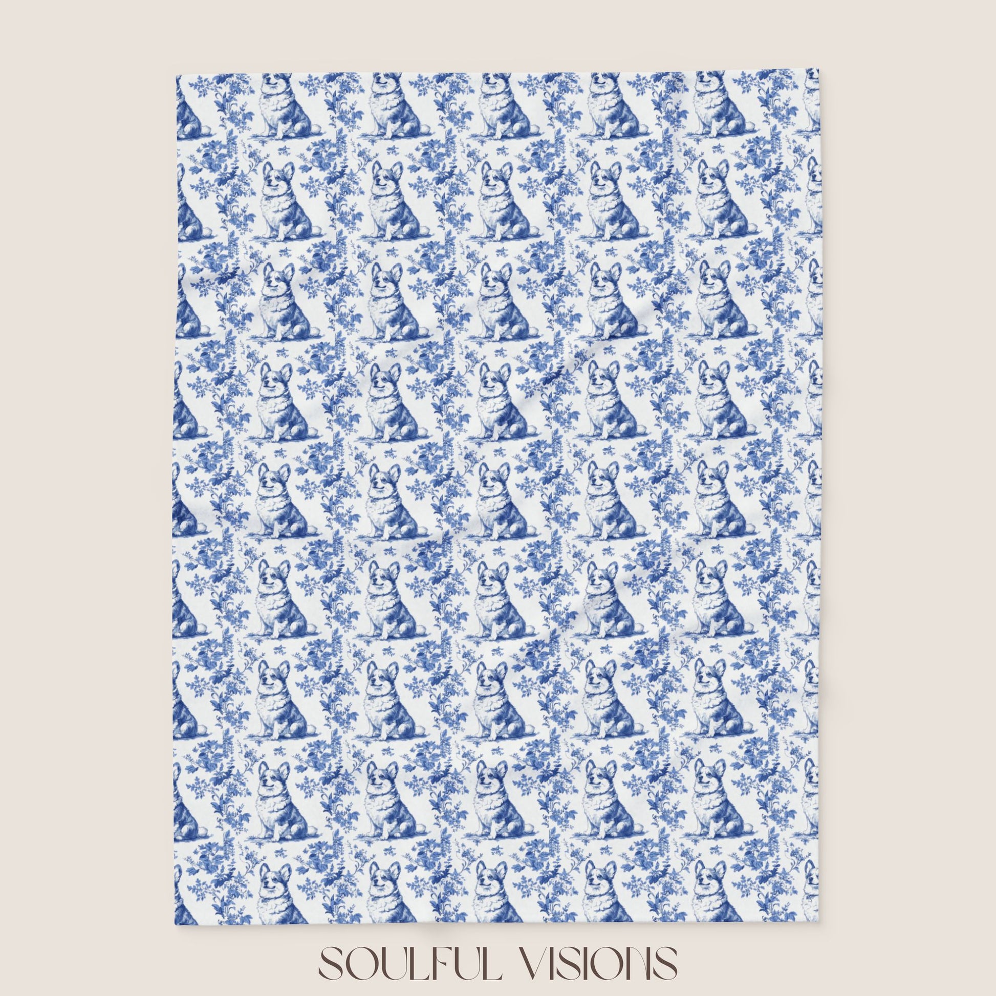 Dog Breeds Toile de Jouy Blue & White Blanket 🐾💙
