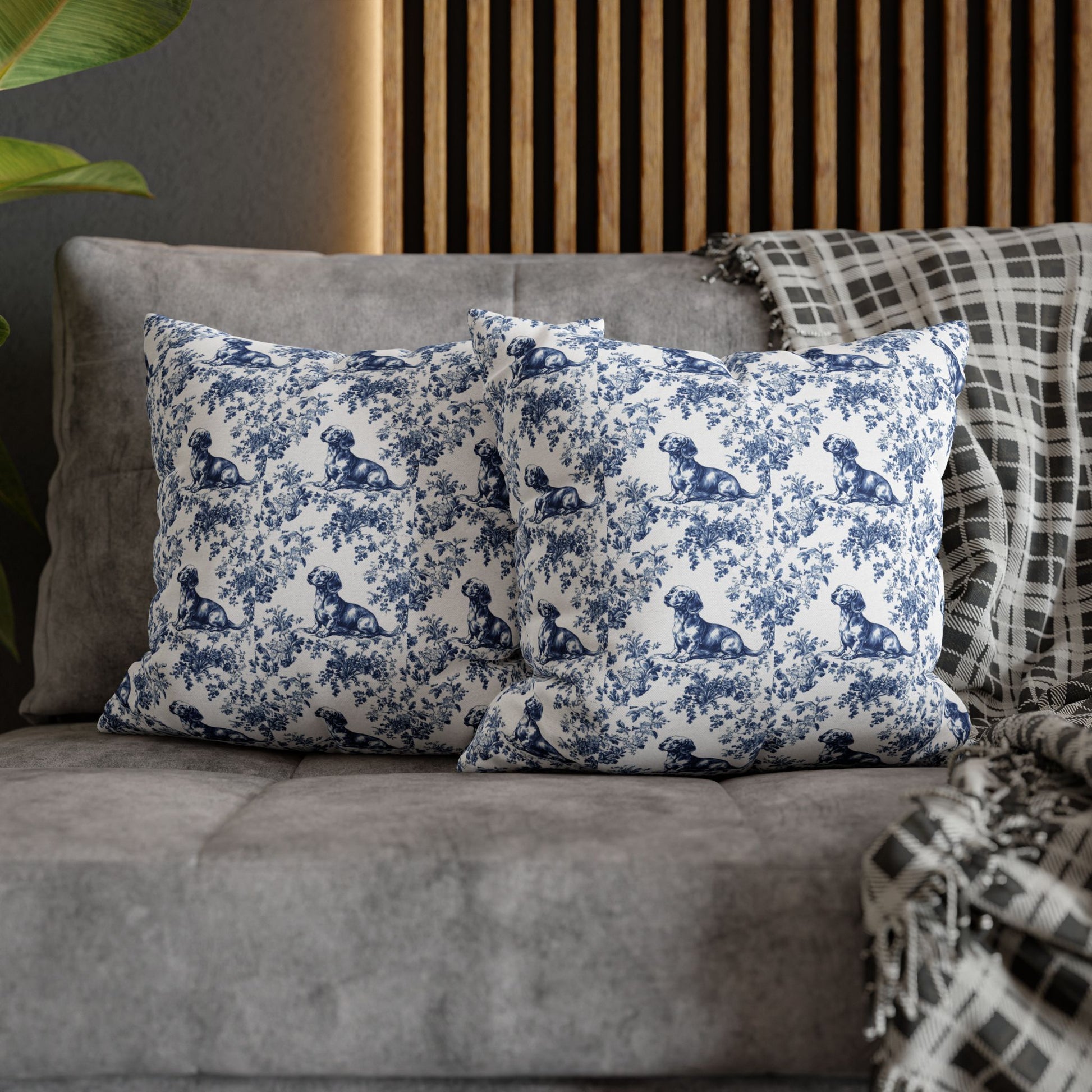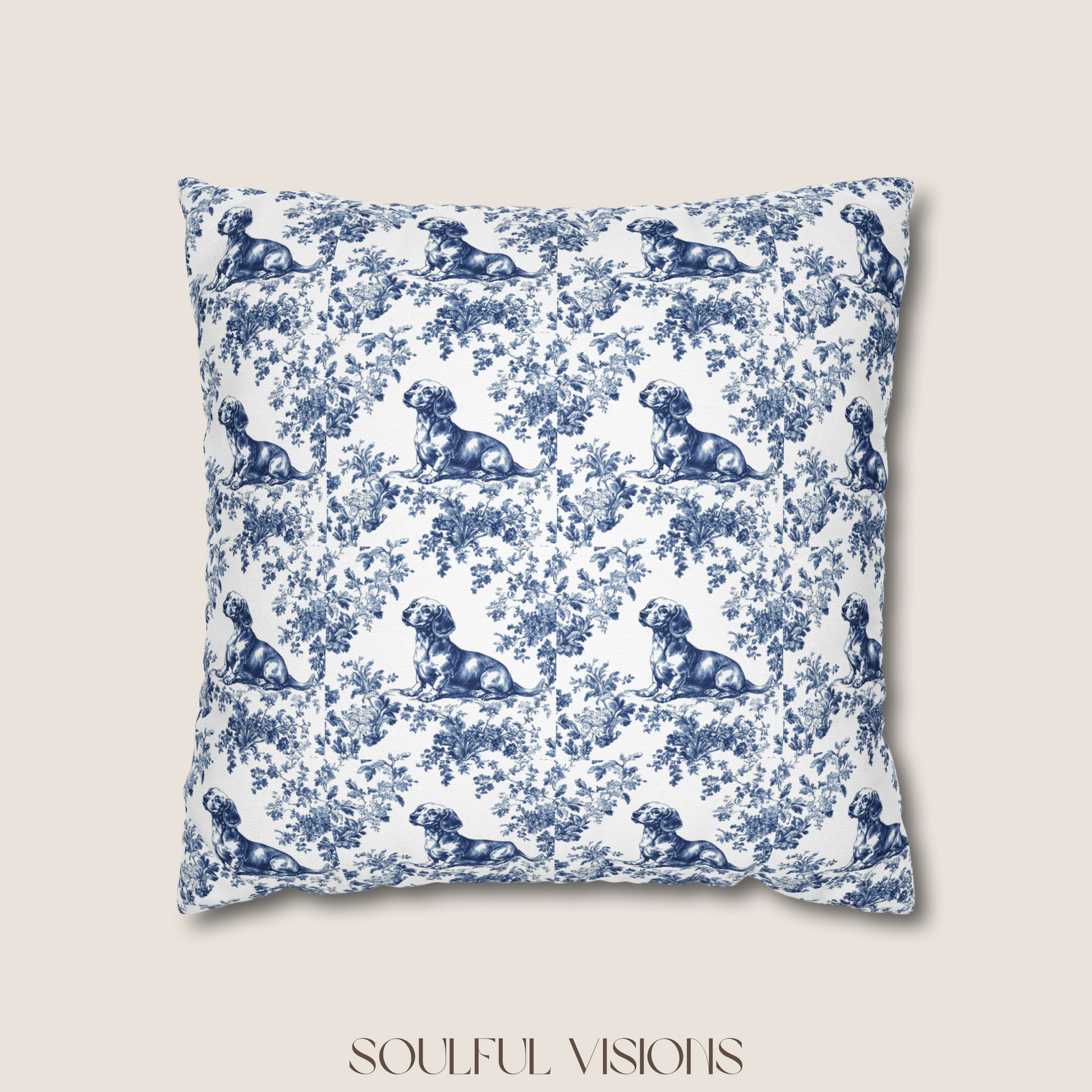 Dachshund Blue French Toile Pillow