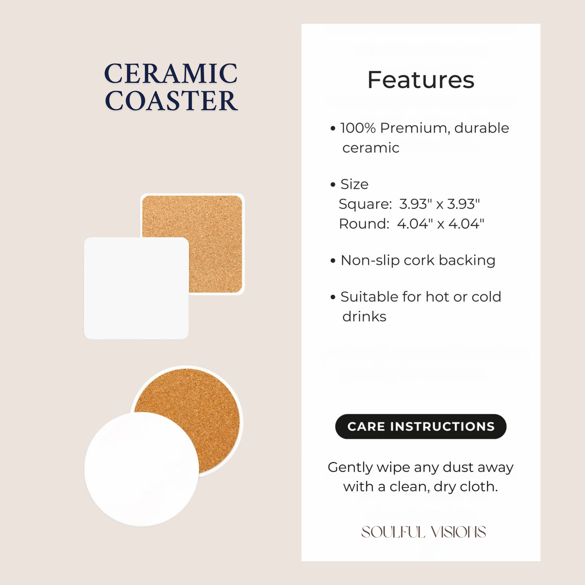 Our ceramic coasters are both functional and stylish—perfect for hot or cold drinks! Designed with a non-slip cork backing, they help prevent spills while protecting your tables. Choose from round or square shapes to match your style. Easy to wipe clean and built to last, they’re a must-have for any coffee table or desk.