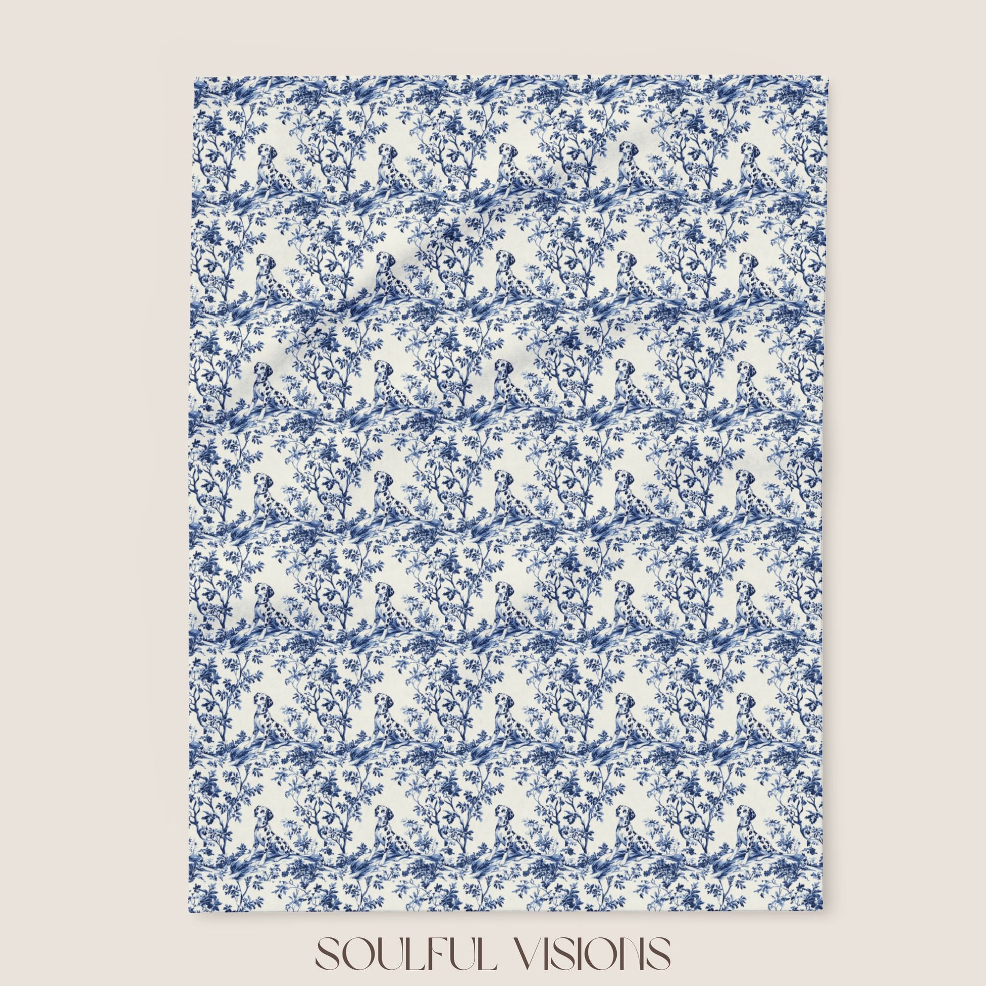 Dog Breeds Toile de Jouy Blue & White Blanket 🐾💙