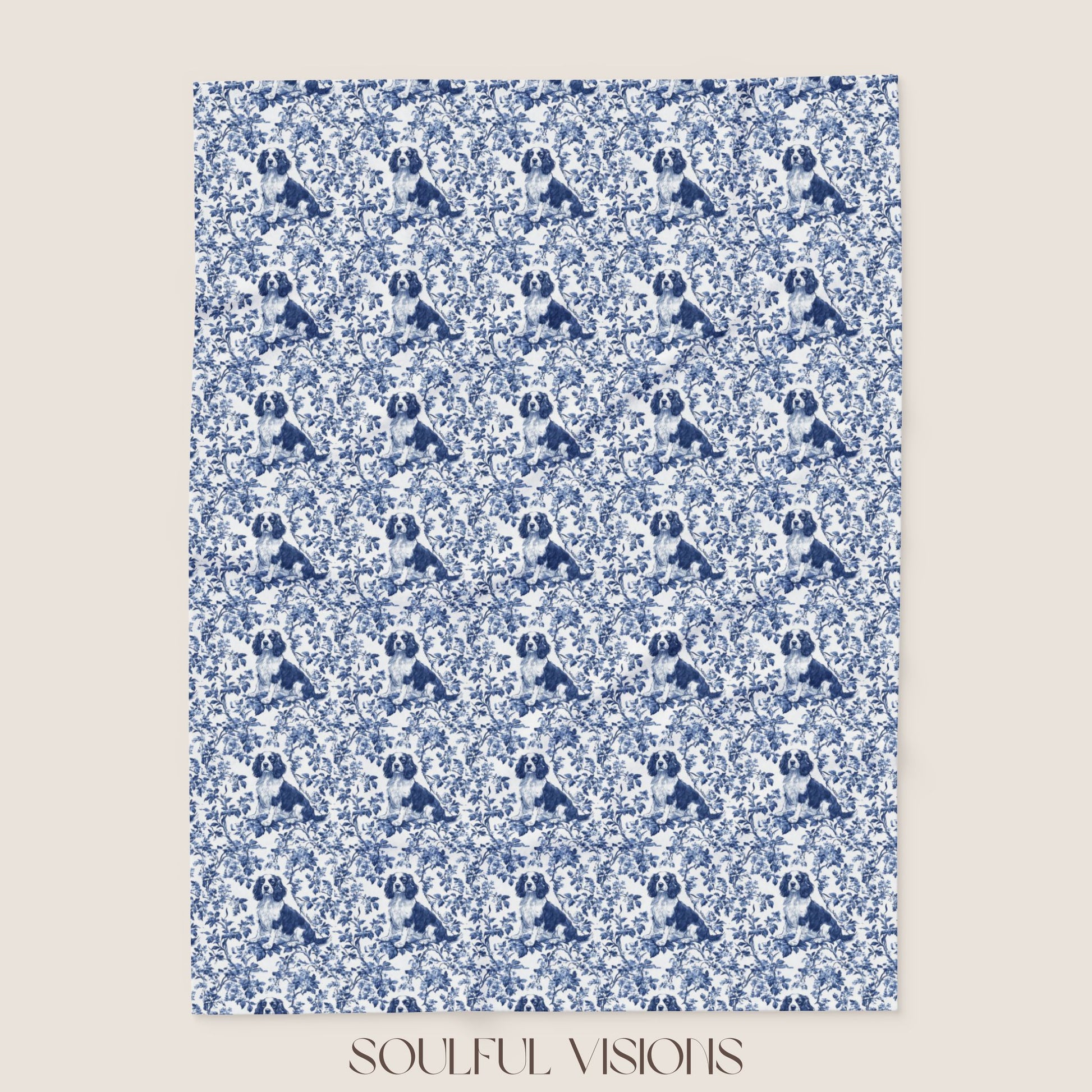 Dog Breeds Toile de Jouy Blue & White Blanket 🐾💙
