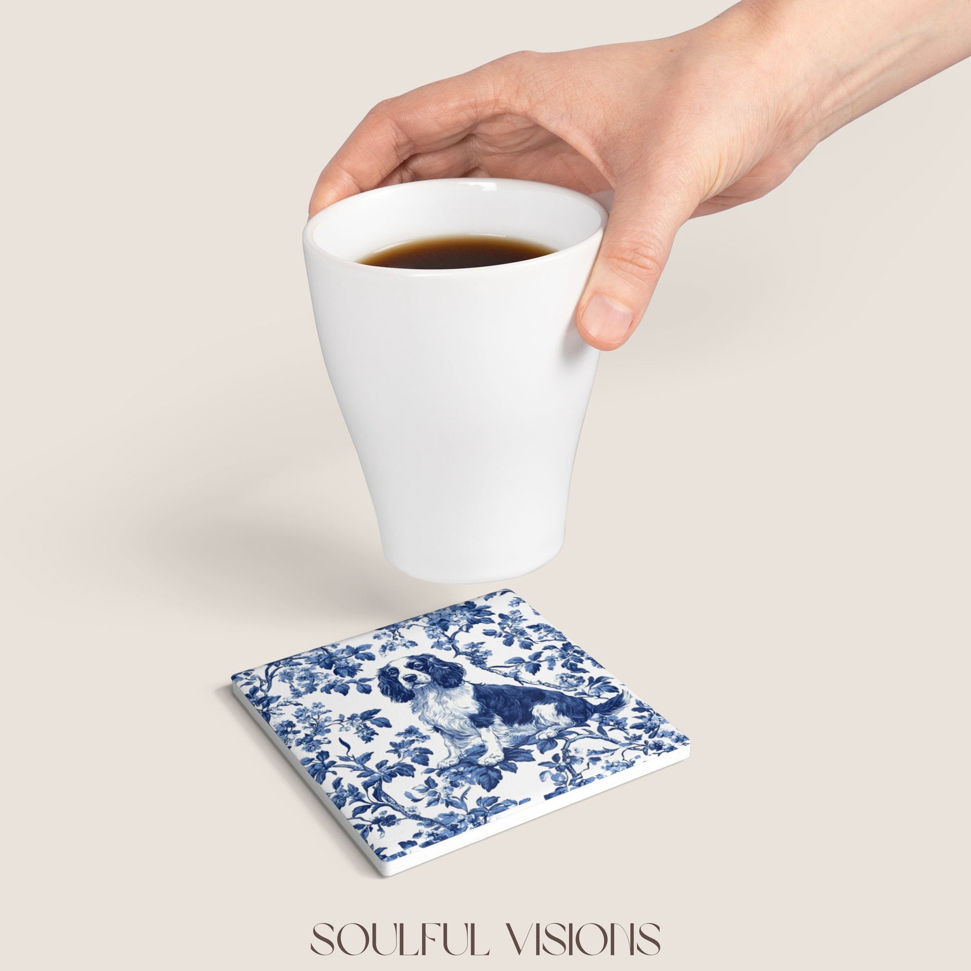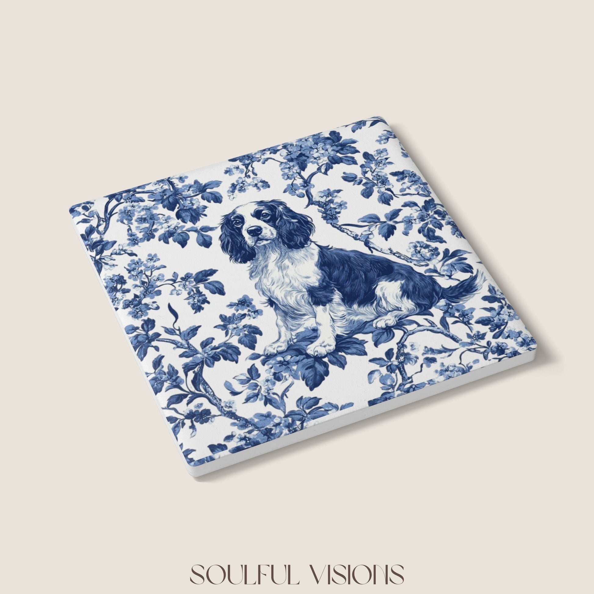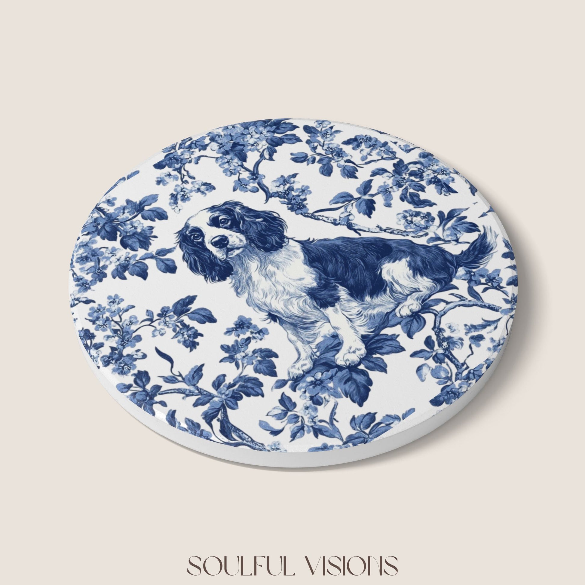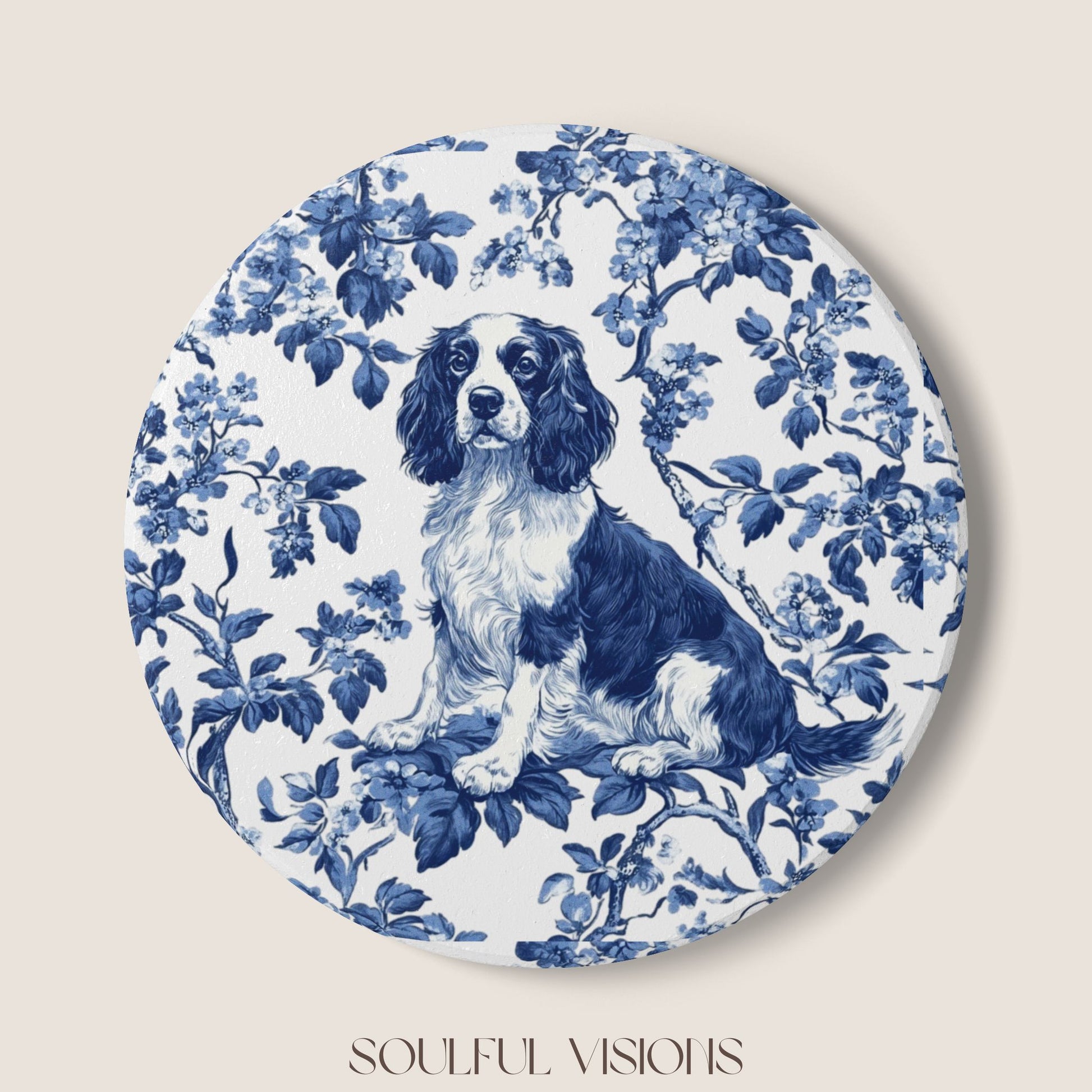 English Springer Spaniel Ceramic Coaster French Toile