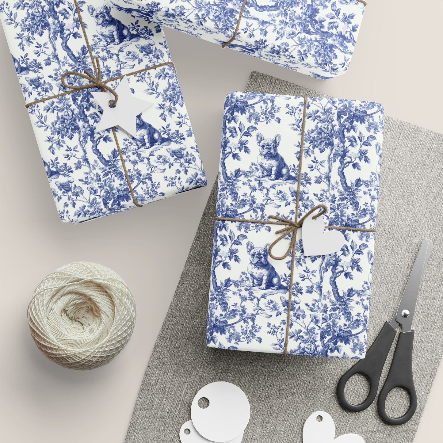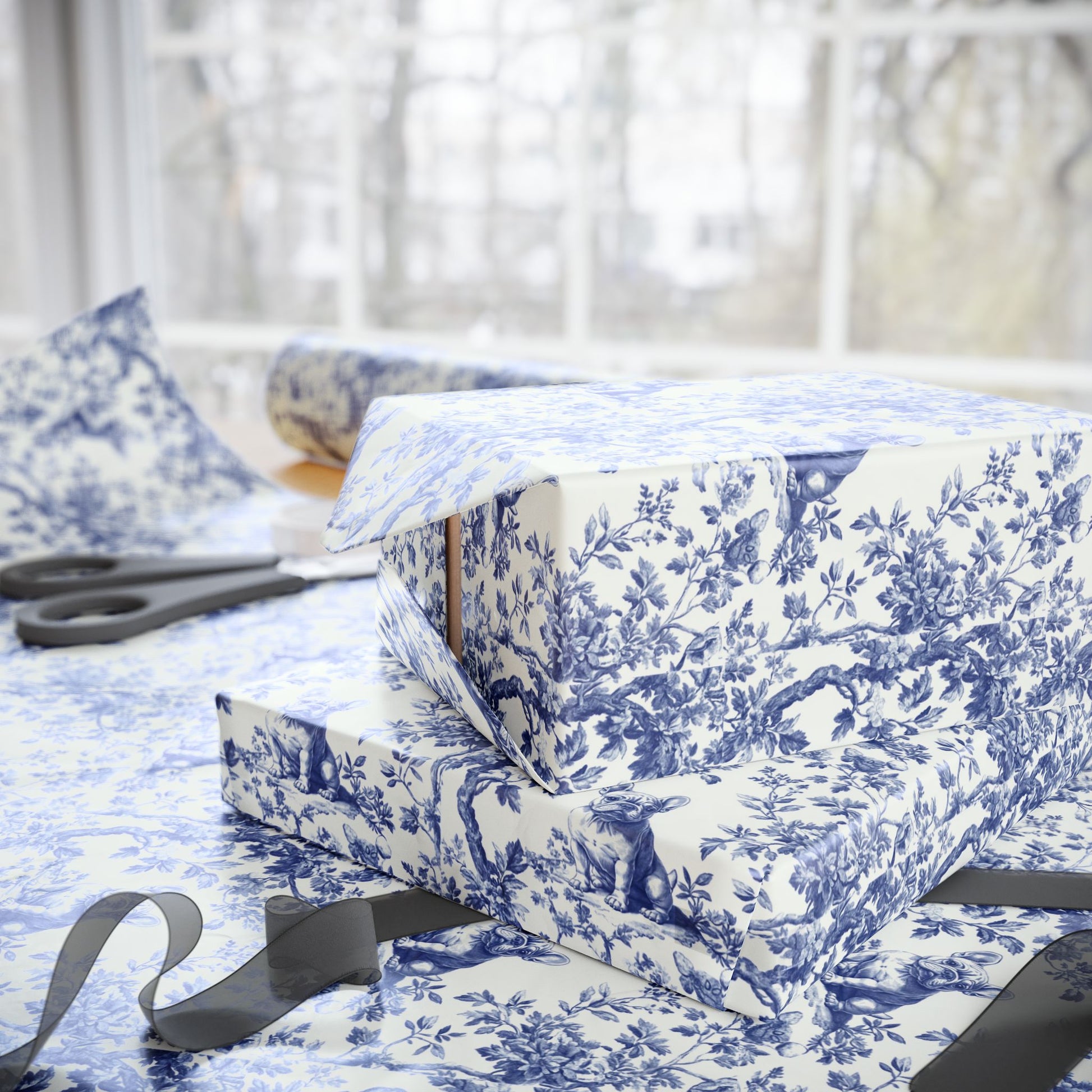 Elevate your gift-giving with our elegant French Toile de Jouy wrapping paper. Featuring a timeless vintage pattern, this wrapping paper brings a touch of sophistication and charm to every package — perfect for dog lovers, holidays, or special occasions.