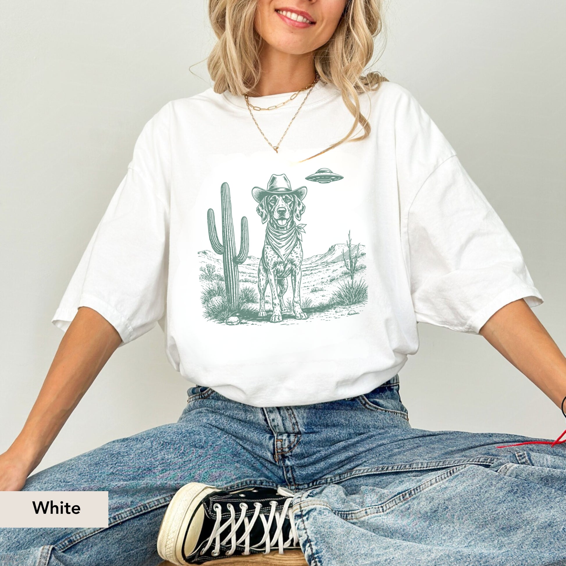 This tee mixes cowboy vibes with a fun UFO twist — perfect for every dog lover who wants something unique.