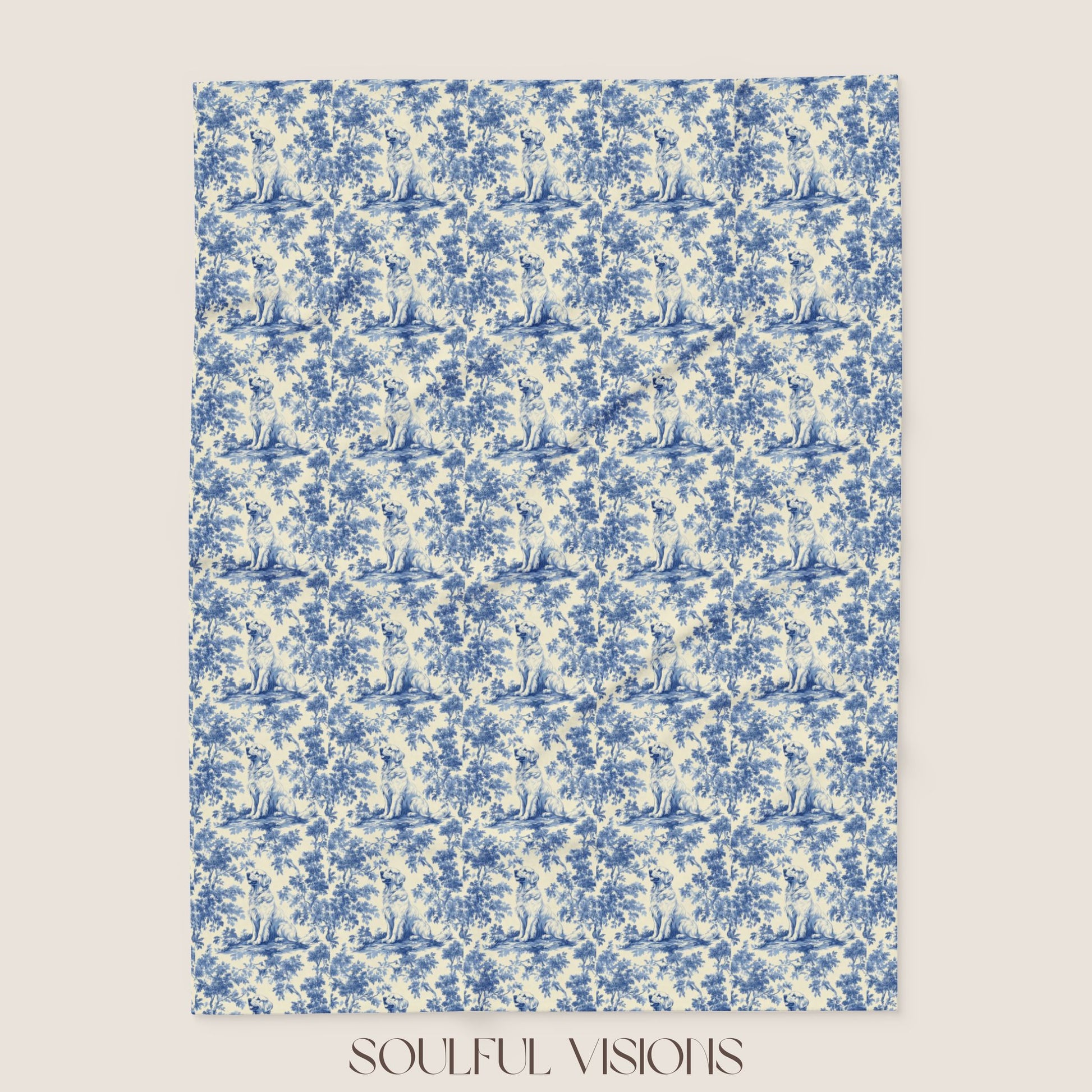 Dog Breeds Toile de Jouy Blue & White Blanket 🐾💙