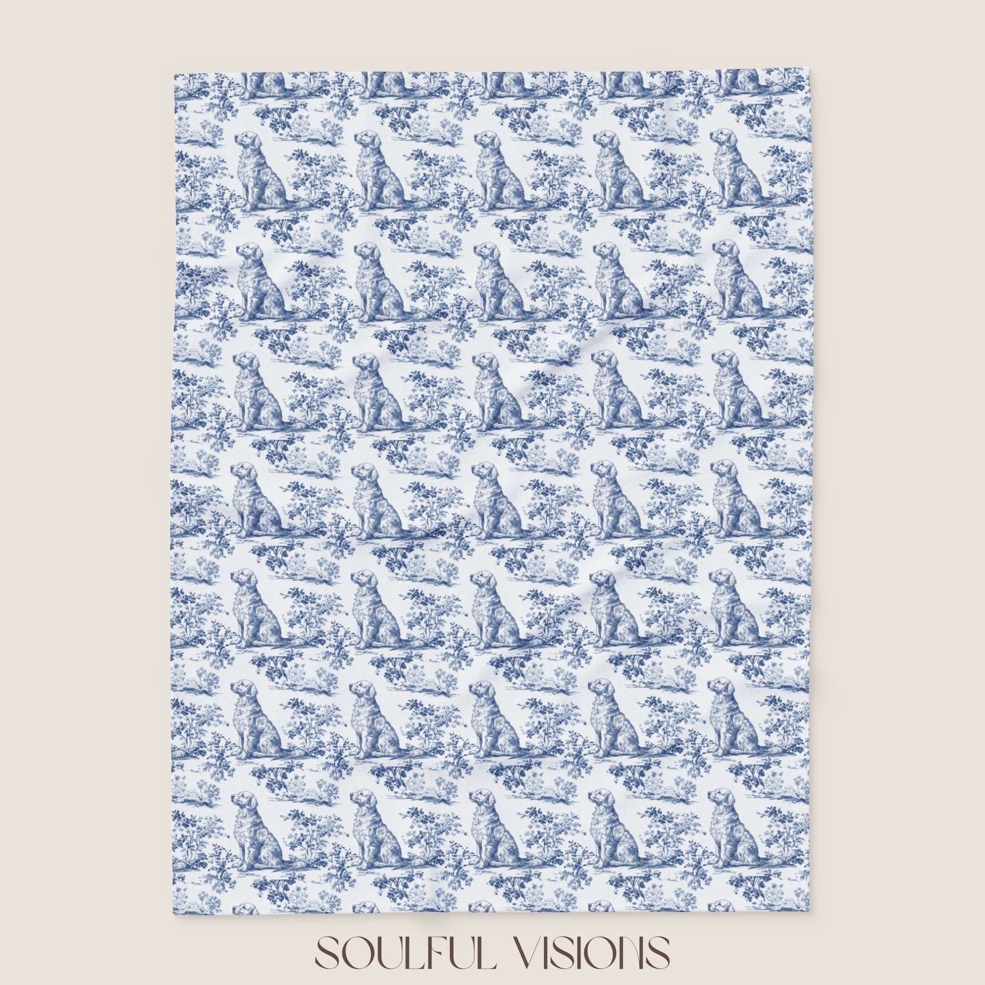 Dog Breeds Toile de Jouy Blue & White Blanket 🐾💙