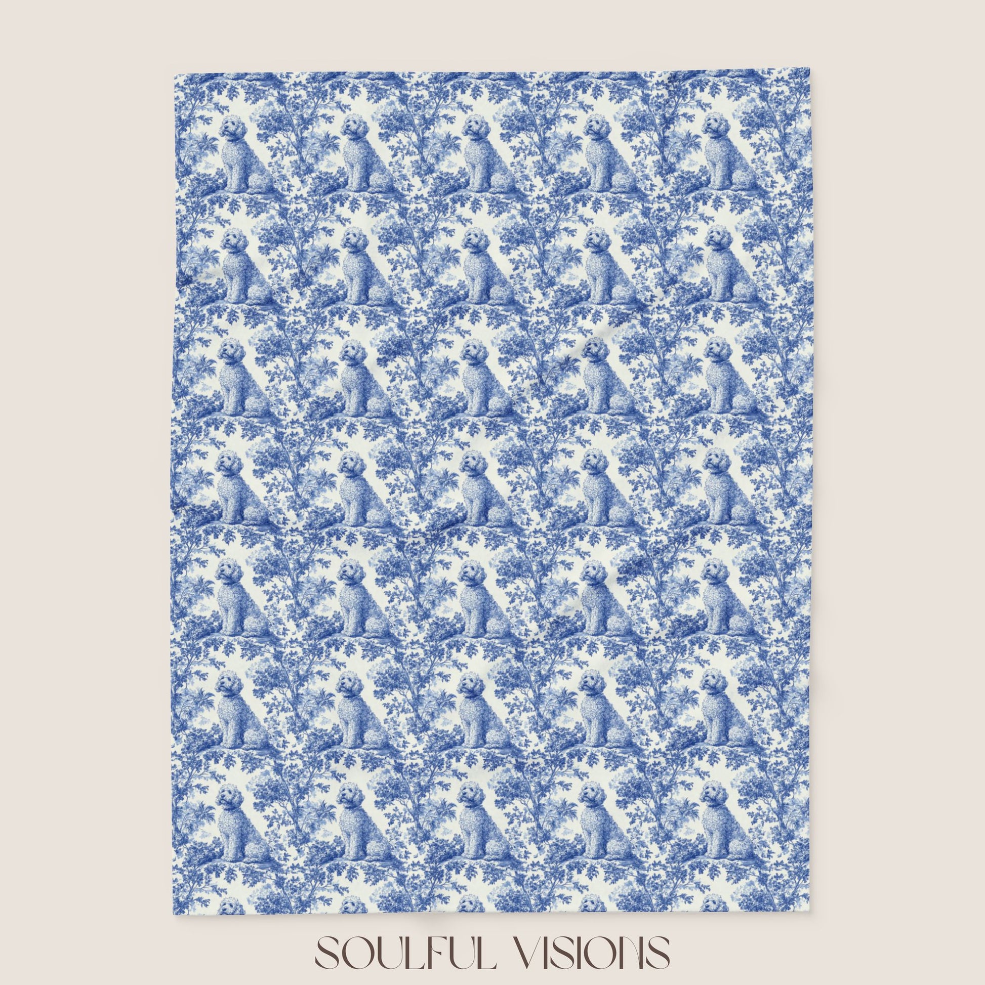 Dog Breeds Toile de Jouy Blue & White Blanket 🐾💙