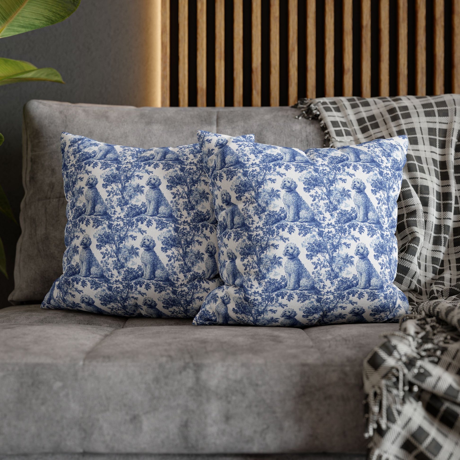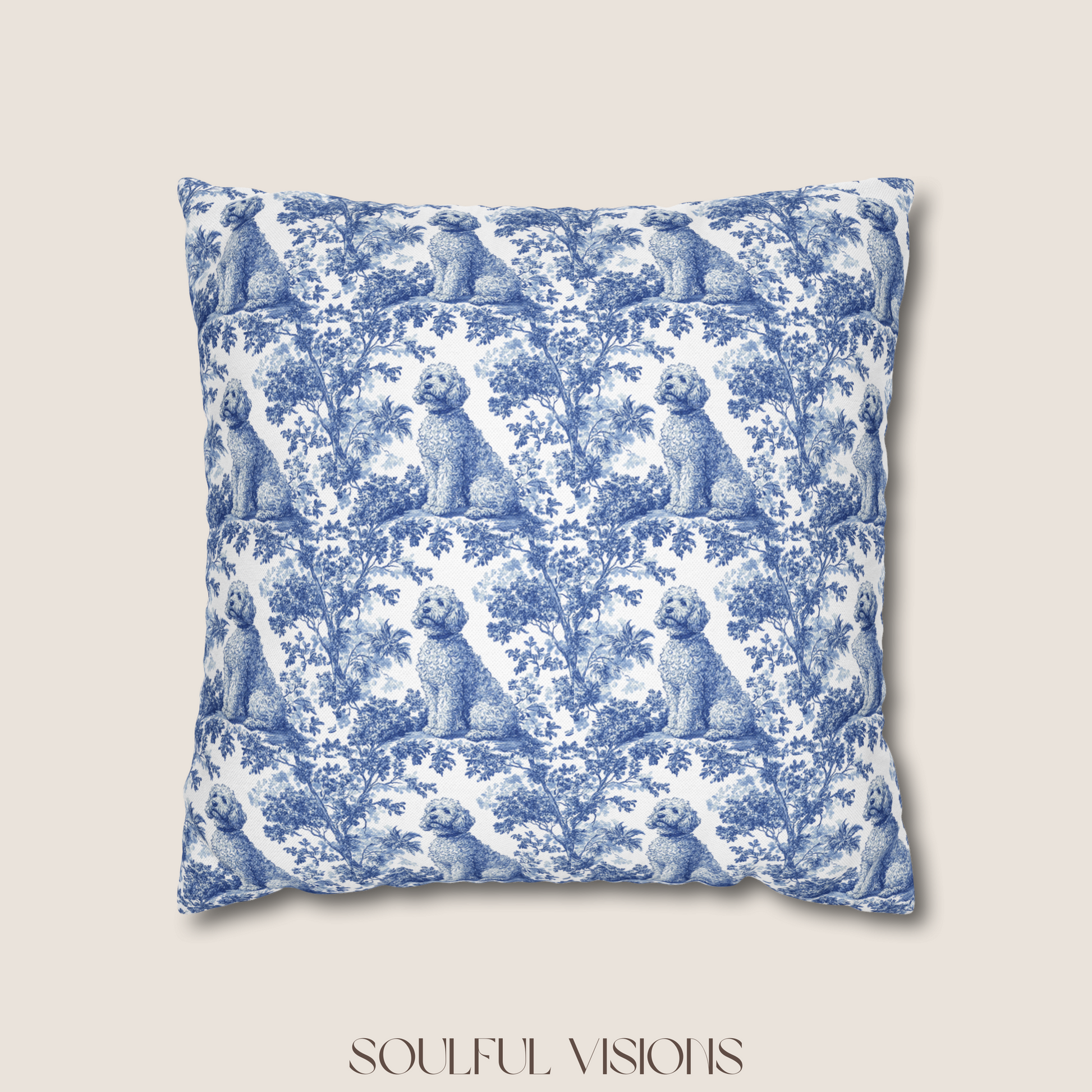 Goldendoodle Blue French Toile Pillow