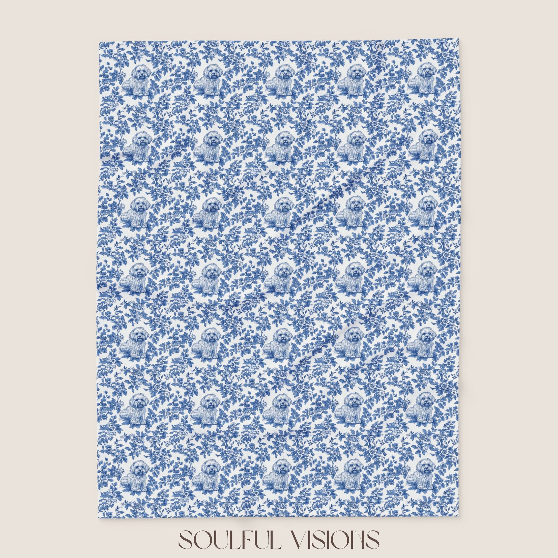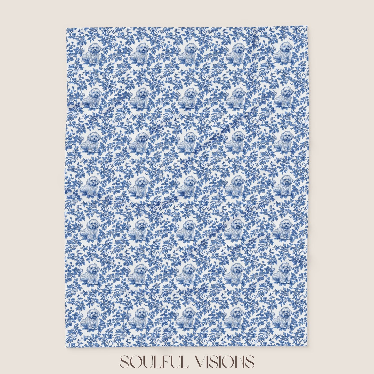Dog Breeds Toile de Jouy Blue & White Blanket 🐾💙