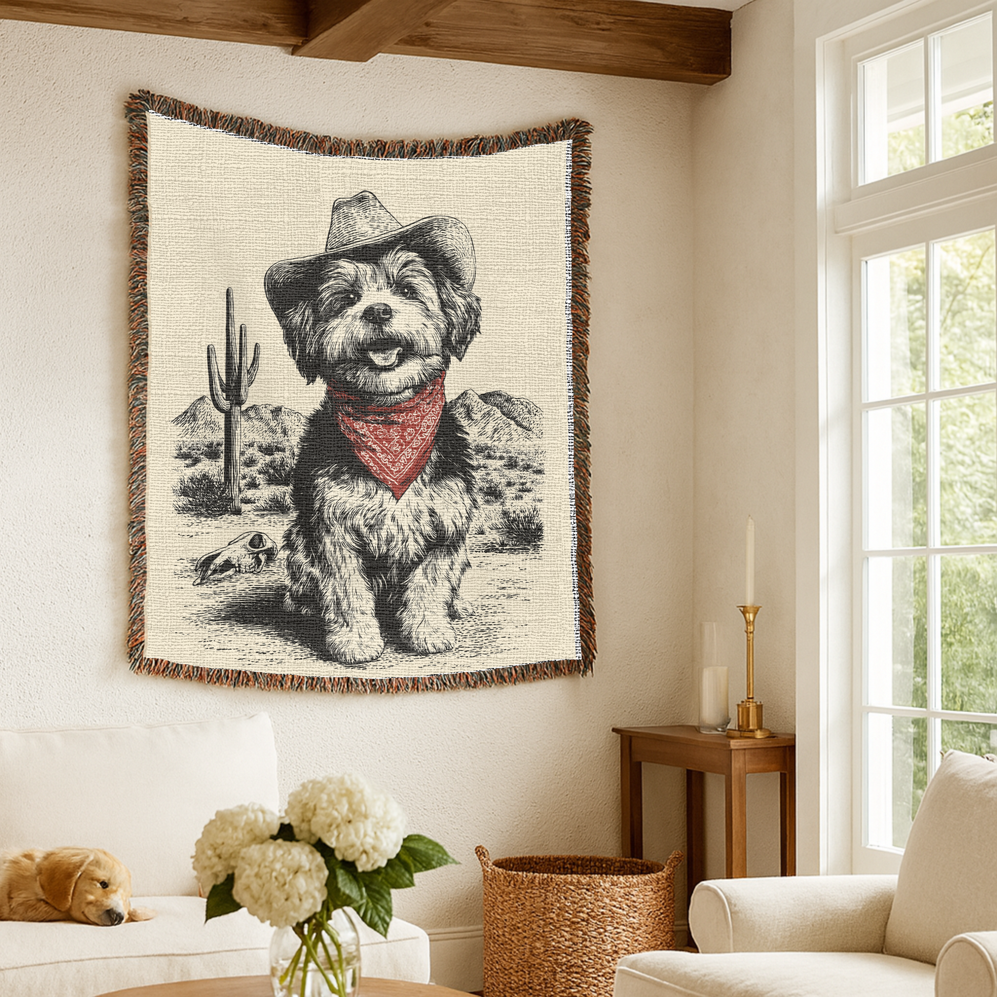 Bring cozy western charm into your home with our Western Dog Woven Blanket. Featuring your Favorite Dog Breed in a western-inspired design, this throw adds both warmth and personality to your space. Perfect for cuddling on the couch, styling your bed, or hanging as wall décor, it’s a statement piece you’ll enjoy season after season.