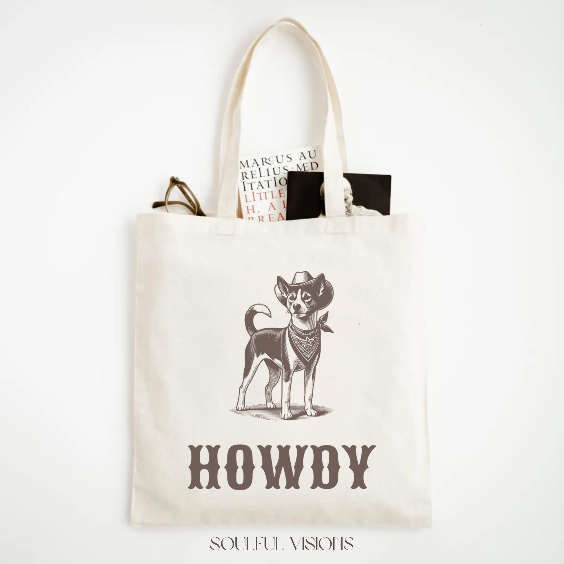 Show off your pet obsession, western style! Our Howdy Tote Bags feature your favorite pet breeds in a playful, vintage-inspired design that turns heads wherever you go.