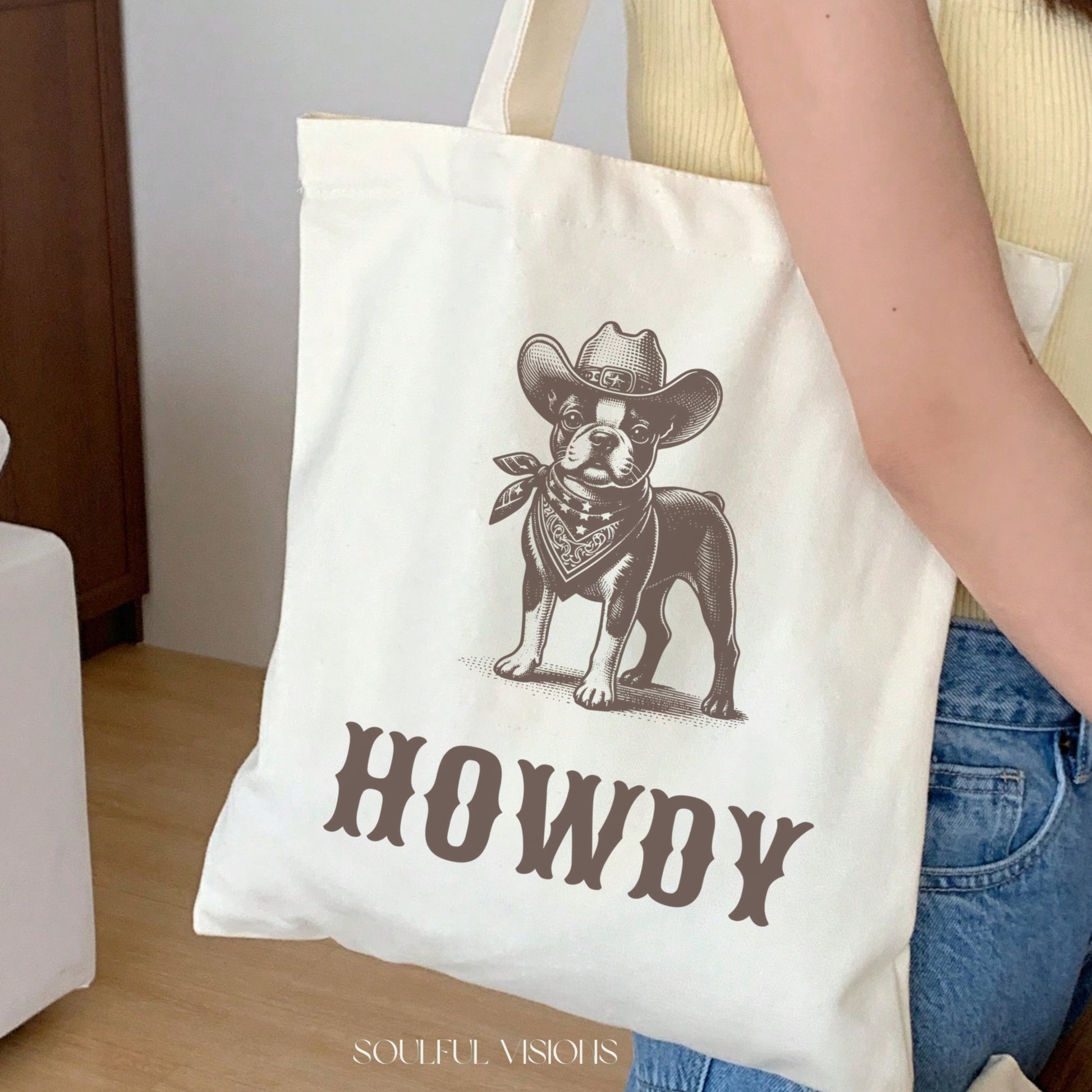 Show off your pet obsession, western style! Our Howdy Tote Bags feature your favorite pet breeds in a playful, vintage-inspired design that turns heads wherever you go.