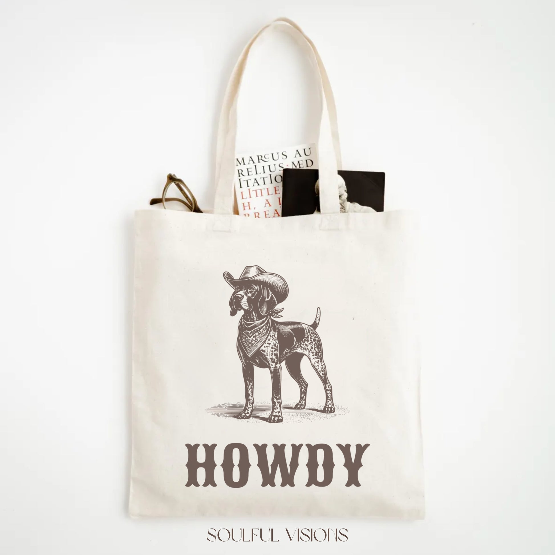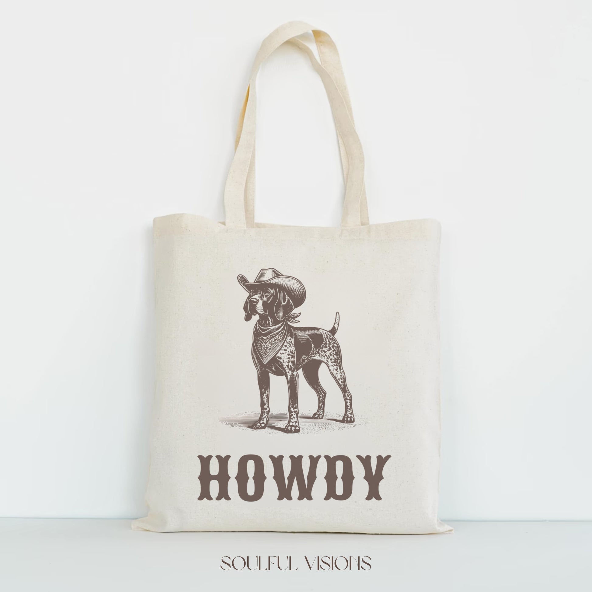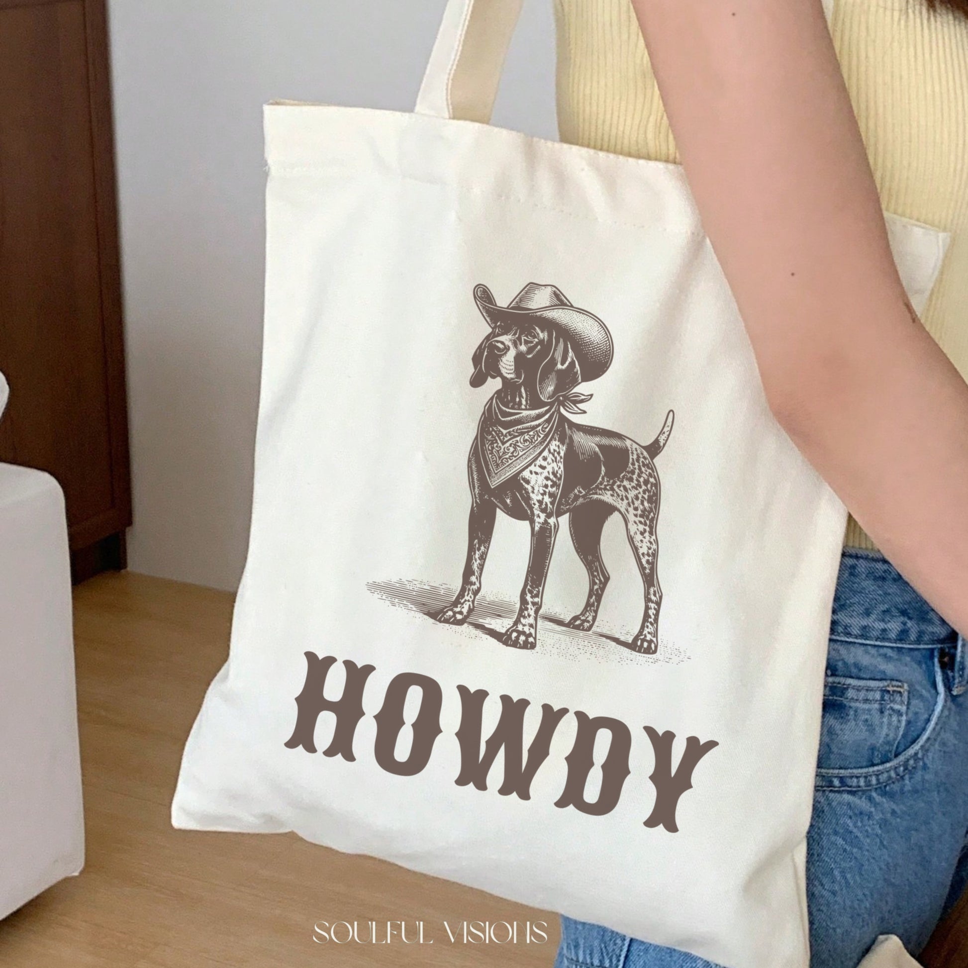 Show off your pet obsession, western style! Our Howdy Tote Bags feature your favorite pet breeds in a playful, vintage-inspired design that turns heads wherever you go.