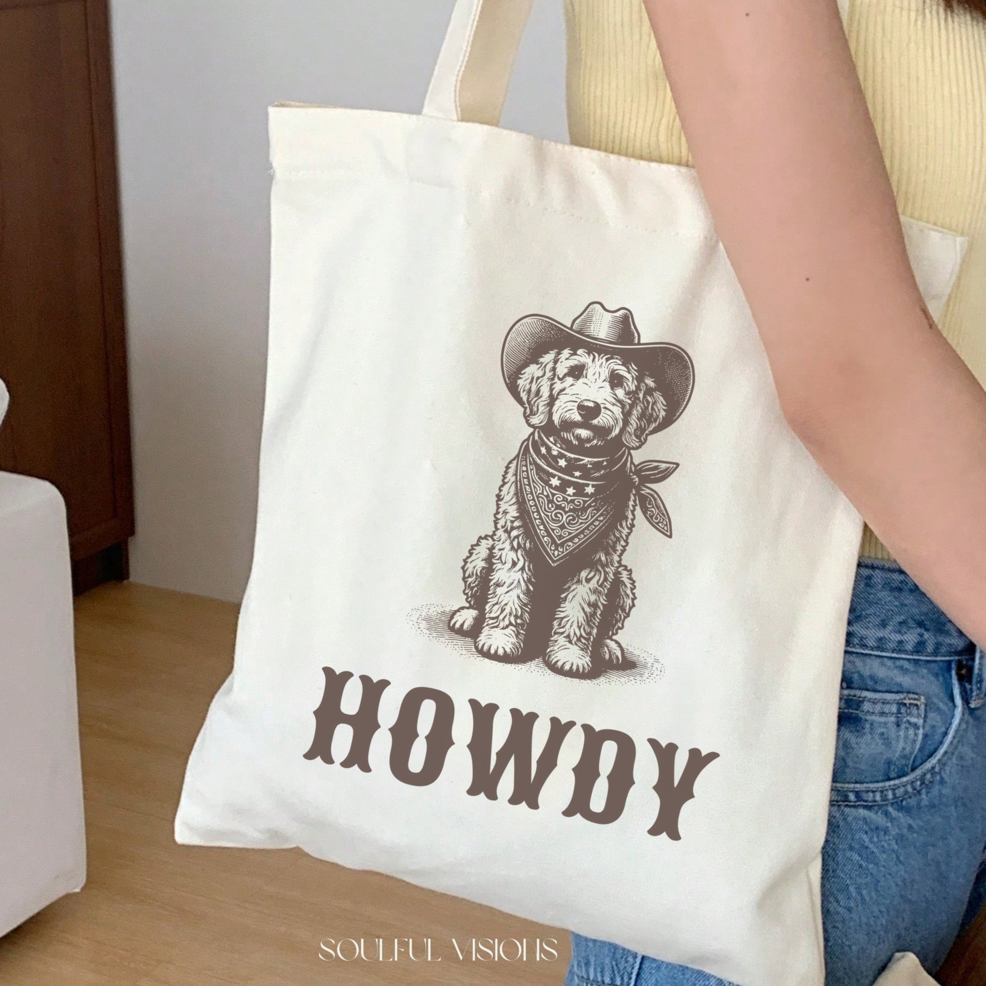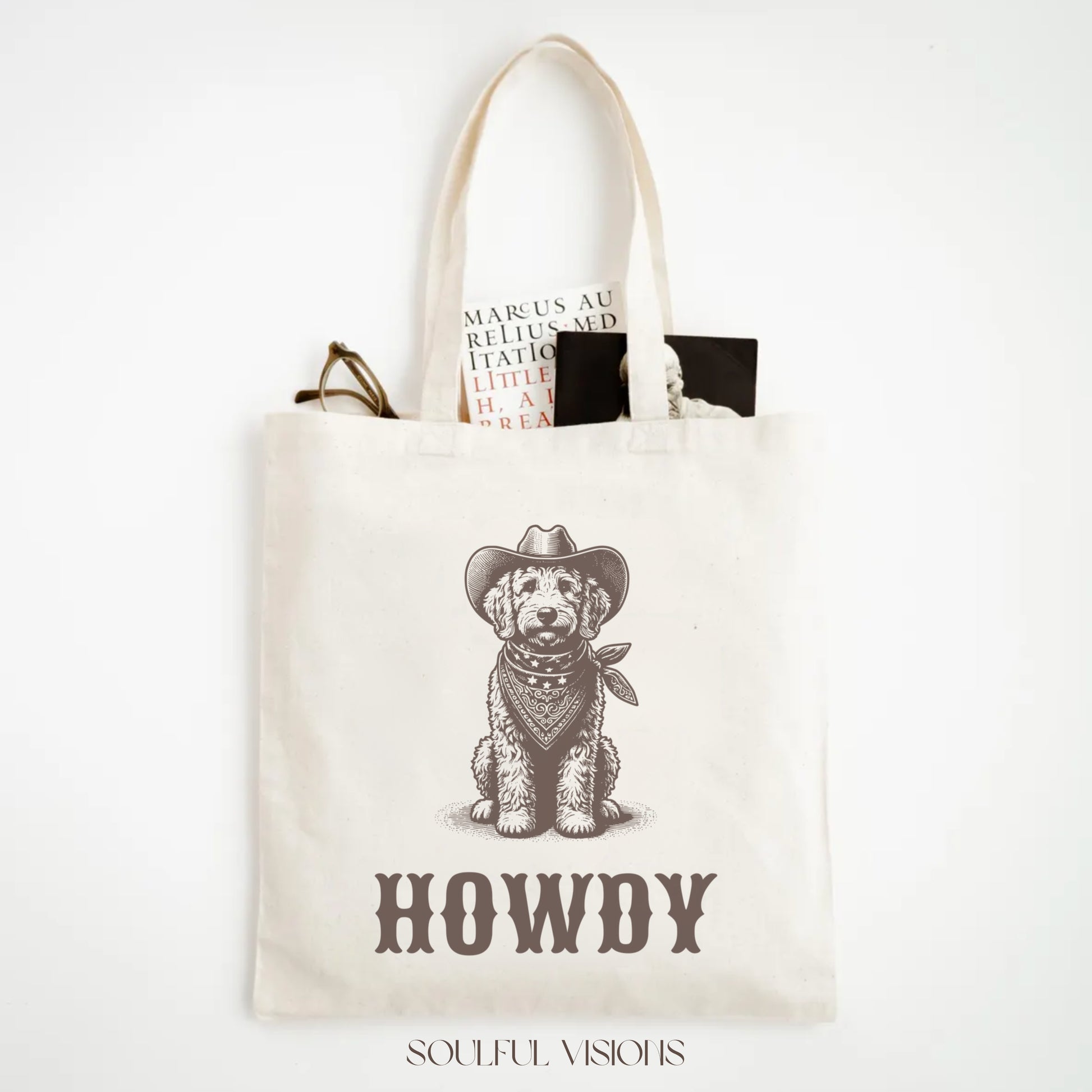 Show off your pet obsession, western style! Our Howdy Tote Bags feature your favorite pet breeds in a playful, vintage-inspired design that turns heads wherever you go.