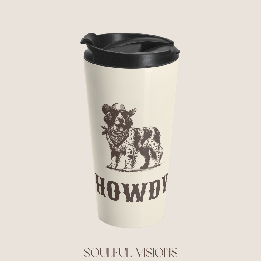 Take your sips on the go with some western charm! Our Howdy Collection travel mug features your favorite pet breeds in a stylish design that’s perfect for busy mornings, road trips, or cozy desk days.