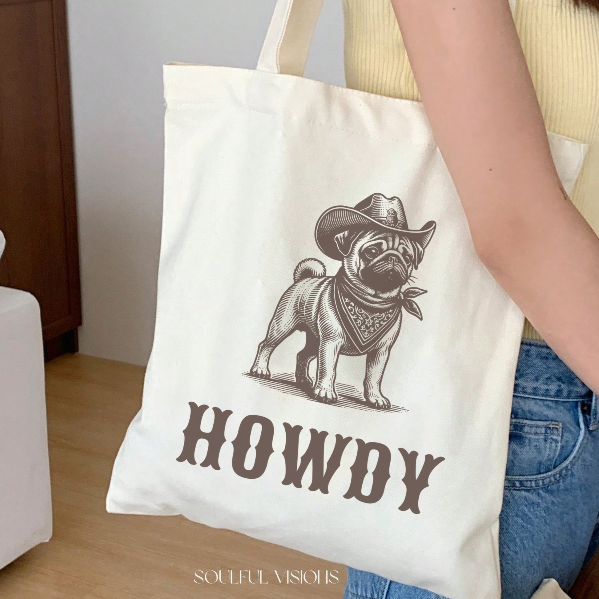 Show off your pet obsession, western style! Our Howdy Tote Bags feature your favorite pet breeds in a playful, vintage-inspired design that turns heads wherever you go.
