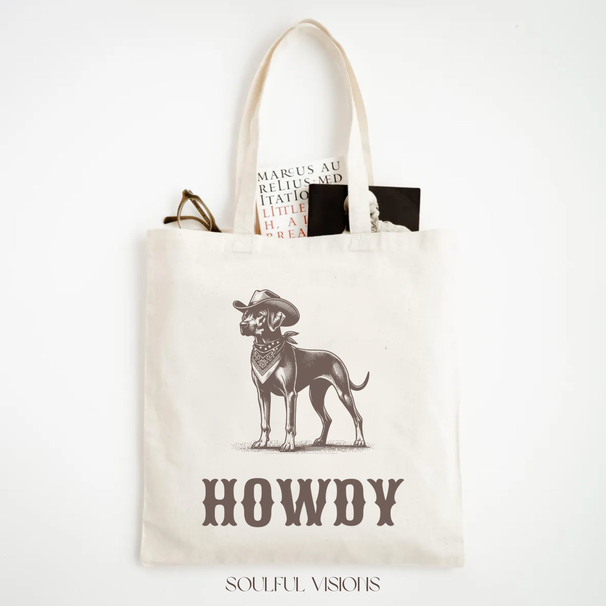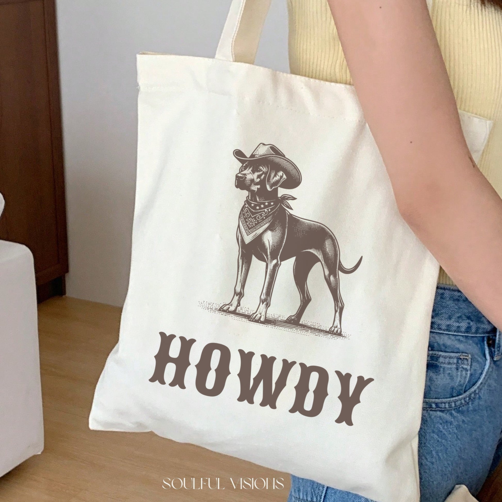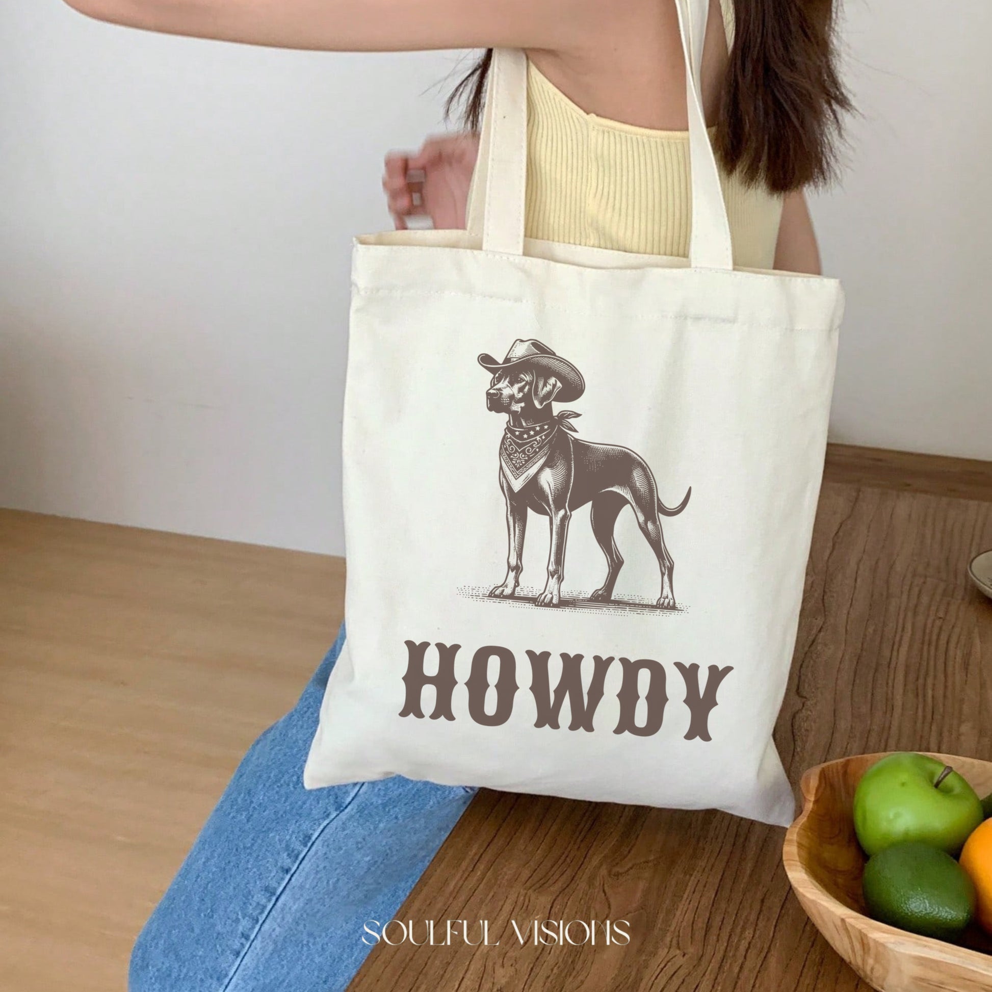 Show off your pet obsession, western style! Our Howdy Tote Bags feature your favorite pet breeds in a playful, vintage-inspired design that turns heads wherever you go.