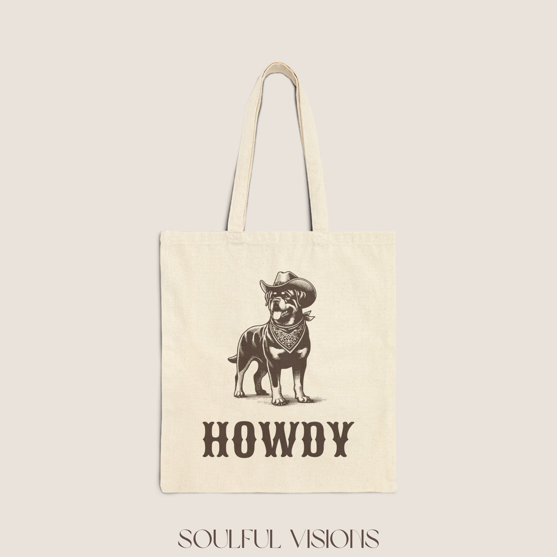 Show off your pet obsession, western style! Our Howdy Tote Bags feature your favorite pet breeds in a playful, vintage-inspired design that turns heads wherever you go.