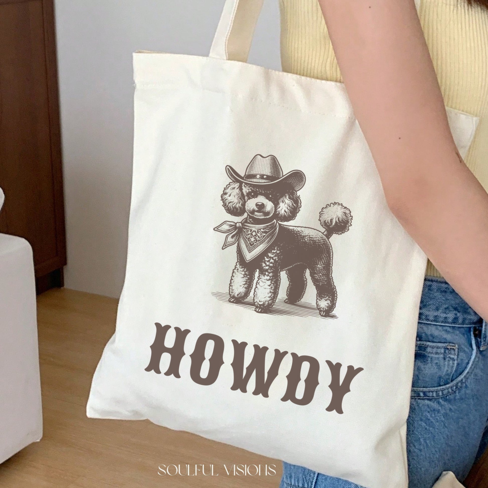 Show off your pet obsession, western style! Our Howdy Tote Bags feature your favorite pet breeds in a playful, vintage-inspired design that turns heads wherever you go.