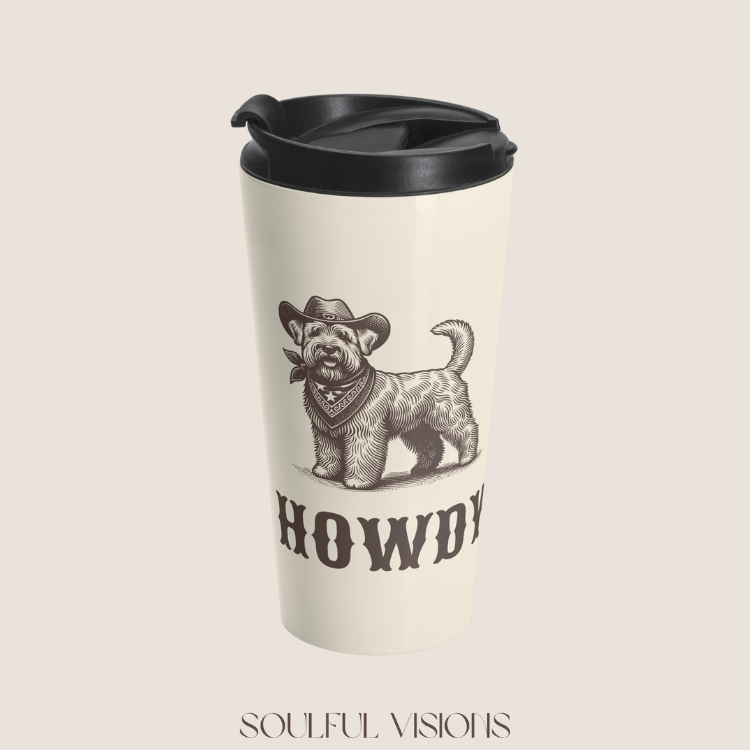 Take your sips on the go with some western charm! Our Howdy Collection travel mug features your favorite pet breeds in a stylish design that’s perfect for busy mornings, road trips, or cozy desk days.